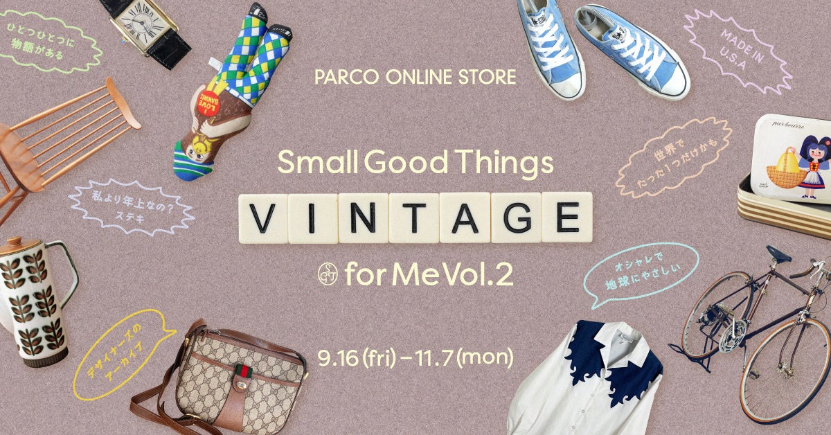 株式会社パルコは、2022年9月16日(金) ~11月7日(月)の期間、パルコが運営するオンラインストア【PARCO ONLINE STORE】限定で、SDGsの観点から再注目される「ヴィンテージ」を特集した企画「~ Small Good Things ~ Vintage for Me vol.2」を開催いたします。(URL:https://parco.jp/cp/vintage/)