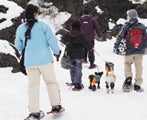 高山植物観察コースから奥の院参道の約2㎞の雪道を歩くスノーシューハイク。ふかふか、ザクザク、真っ白な雪と溶岩の黒のコントラストが夏の鬼押出し園とはまったく別の表情で皆さまを異世界へ誘う絶景スノーシュー体験。カップル、ご家族、ワンちゃんとご一緒に澄んだ空気をからだいっぱい吸い込んで大きく深呼吸。目の前に広がる力強く壮大な景観をお楽しみいただき、日頃の喧騒から解き放たれ大自然の静寂を体感してみてください。