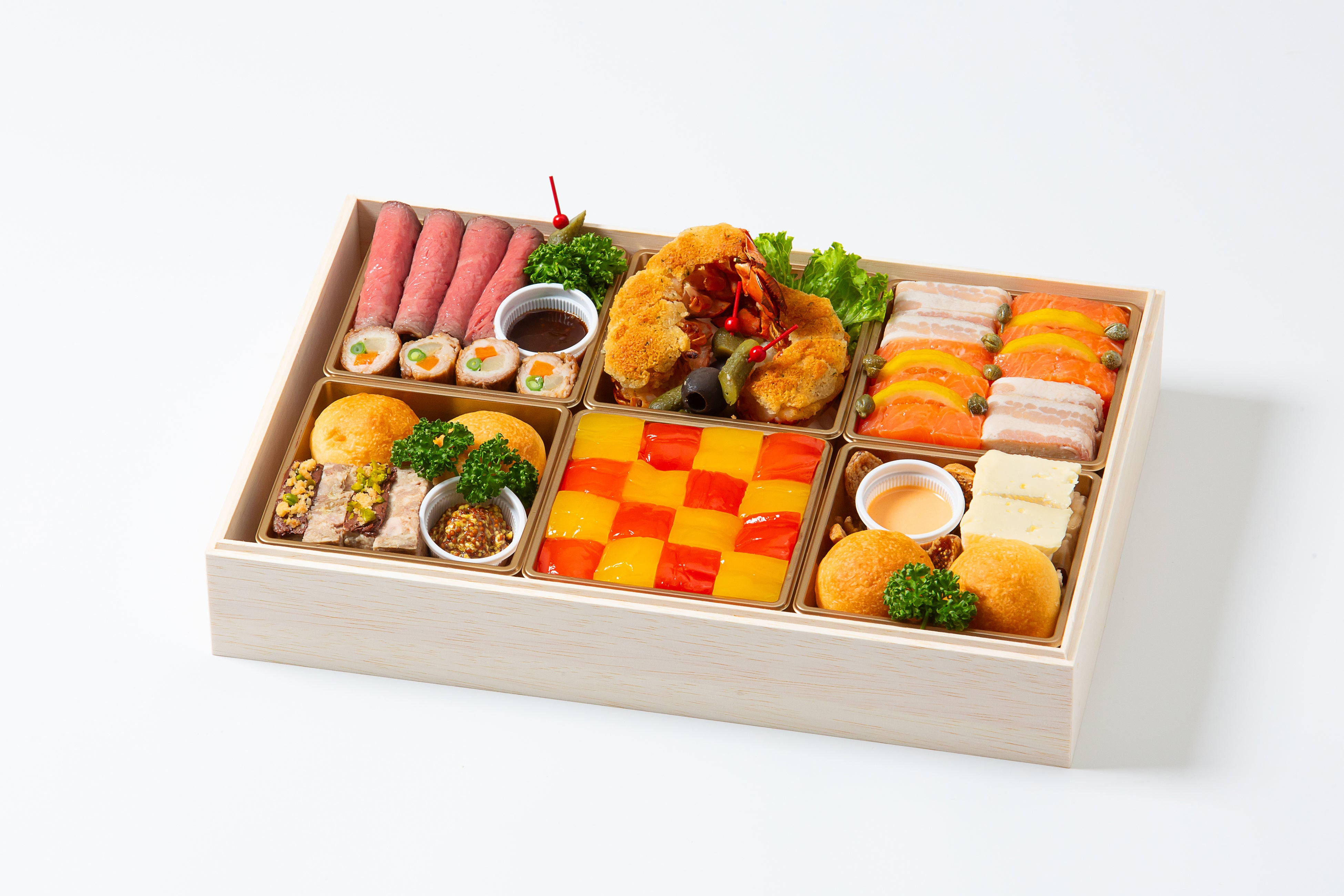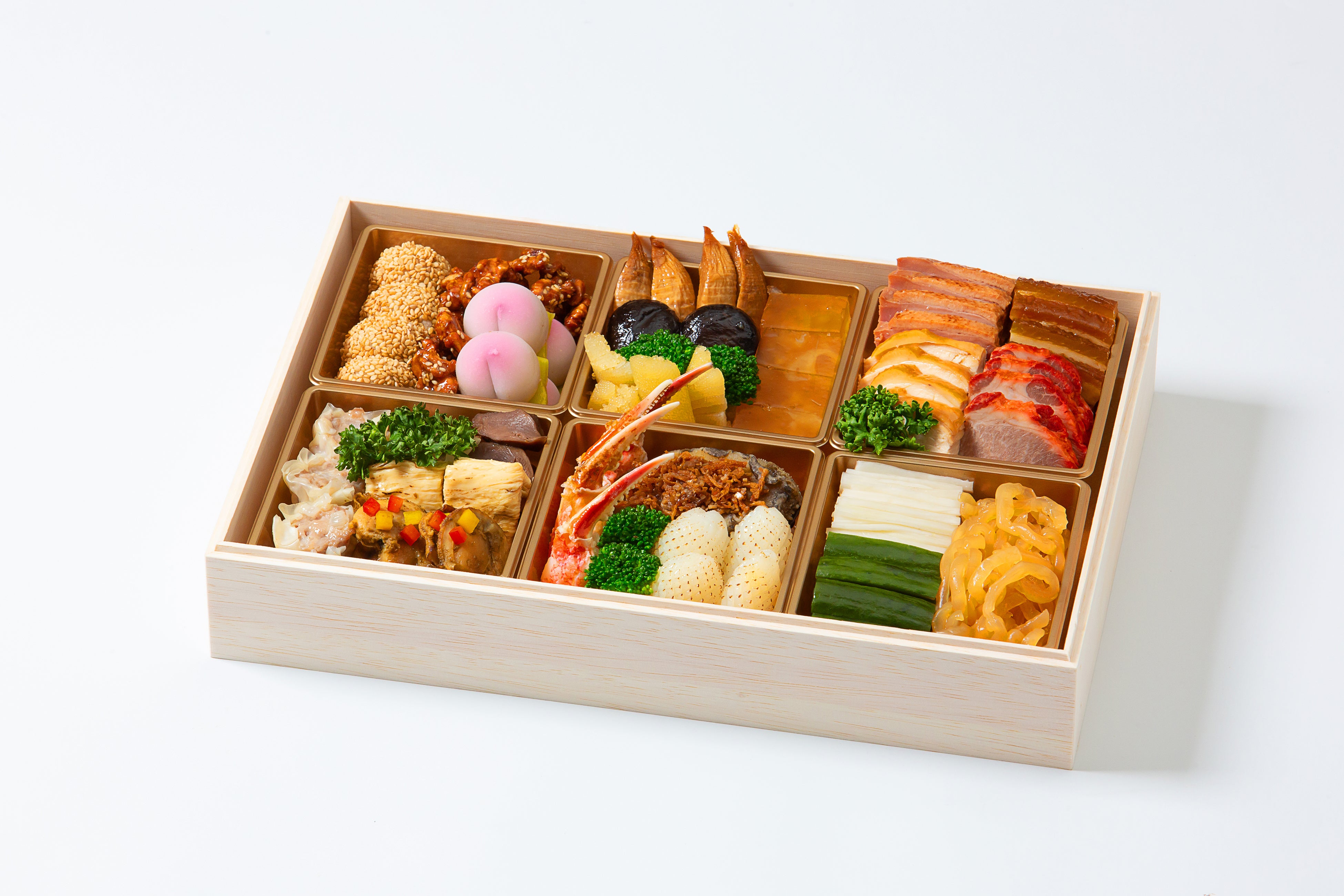 「和食の重」では、鯛や鰤など地元の魚をはじめ、鰻・鮎・栗きんとん・黒豆・根菜など、日本の伝統を重んじた縁起物の数々を取り合わせました。「洋食の重」では、長崎の魚や猪のほか、佐世保市「さとむら牧場」のカマンベールチーズなど、ふるさとの味覚とともに、フランス料理のエッセンスを感じる華やかなお重に仕上げました。「中華の重」では、フカヒレやアワビ、松笠烏賊といった海の幸を贅沢に取り入れ、さらに豚角煮・鶏の香味煮・大西海SPF豚を使用した叉焼が味わいに彩りを添えます。