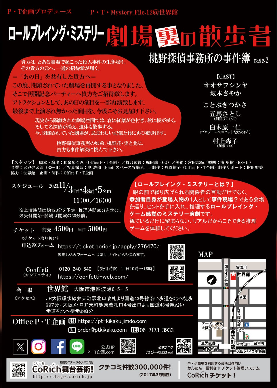 P・T企画が贈る観客参加型ミステリーは、単なる観客で終わることはありません。参加者は物語の一部となり、事件を解決するために自らの推理力を駆使します。そして、今回の『劇場裏の散歩者』では、これまで以上に没入感あふれる体験が約束されています。