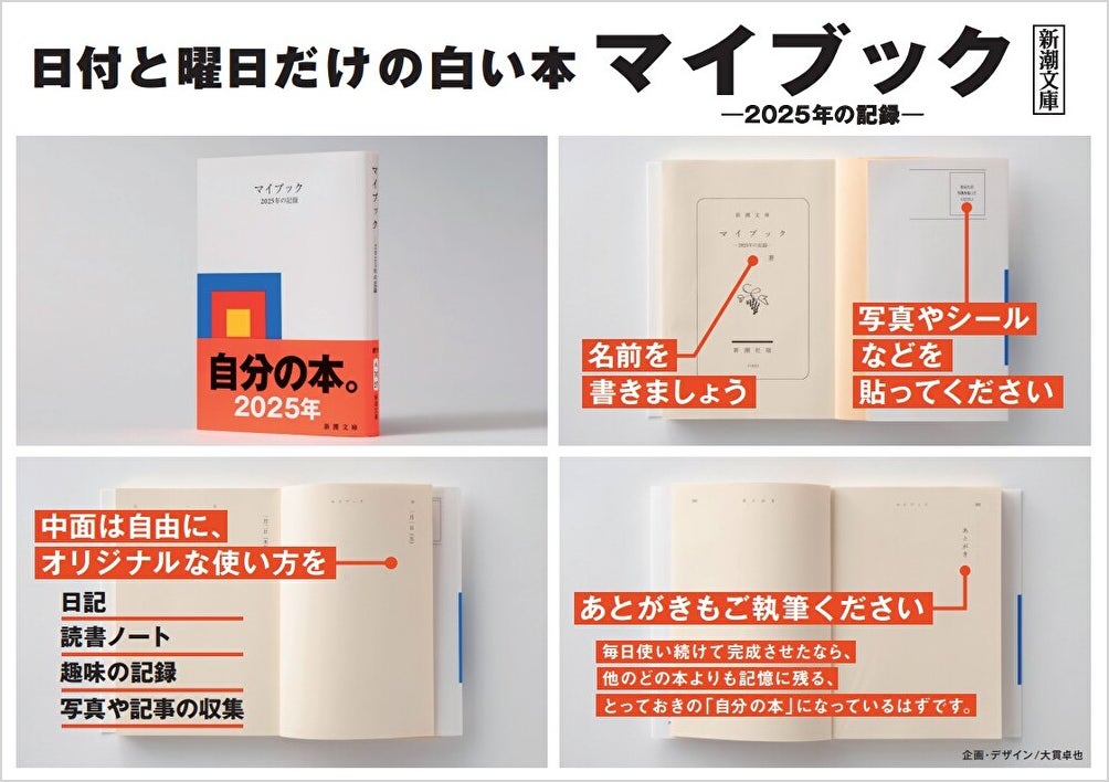 マイブックには、日付と曜日しか入っていません。これは2025年のあなたがつくる、世界に一冊だけの本。どんなふうに使うかはあなたの自由です。日記をつづってもよし。手帳として持ち歩くのもよし。誰にも思いつかないオリジナルな使い方を試してみるのも、きっと楽しいでしょう。毎日使い続けて完成させたなら、他のどの本よりも記憶に残る、とっておきの「自分の本」になっているはずです。