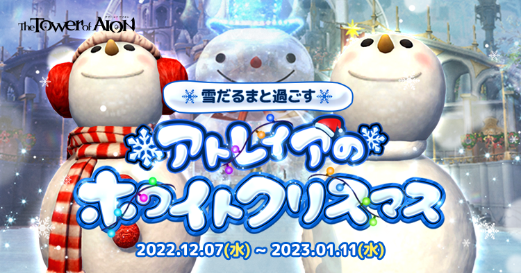 PC向けオンラインゲーム『The Tower of AION(以下、タワー オブ アイオン)』をサービス、運営しているエヌ・シー・ジャパン株式会社(本社:東京都港区、代表取締役:金 澤憲(キム テクホン))は、本日2022年12月7日(水)にライブサービス/クラシックサービスにてクリスマスイベント「CHRISTMAS FESTIVAL2022」の開催および特設サイト公開と、「アトレイアのホワイトクリスマス」「クリスマスログインボーナス」の開催をお知らせします。