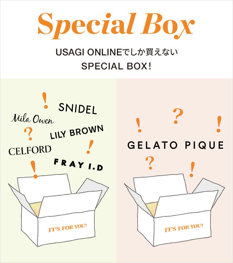 福袋同様何がはいっているかわからないワクワク感を味わえる、「USAGI ONLINE」だからこそ実現できる[Special BOX]をアパレル2種・コスメ3種計5種を展開しました。