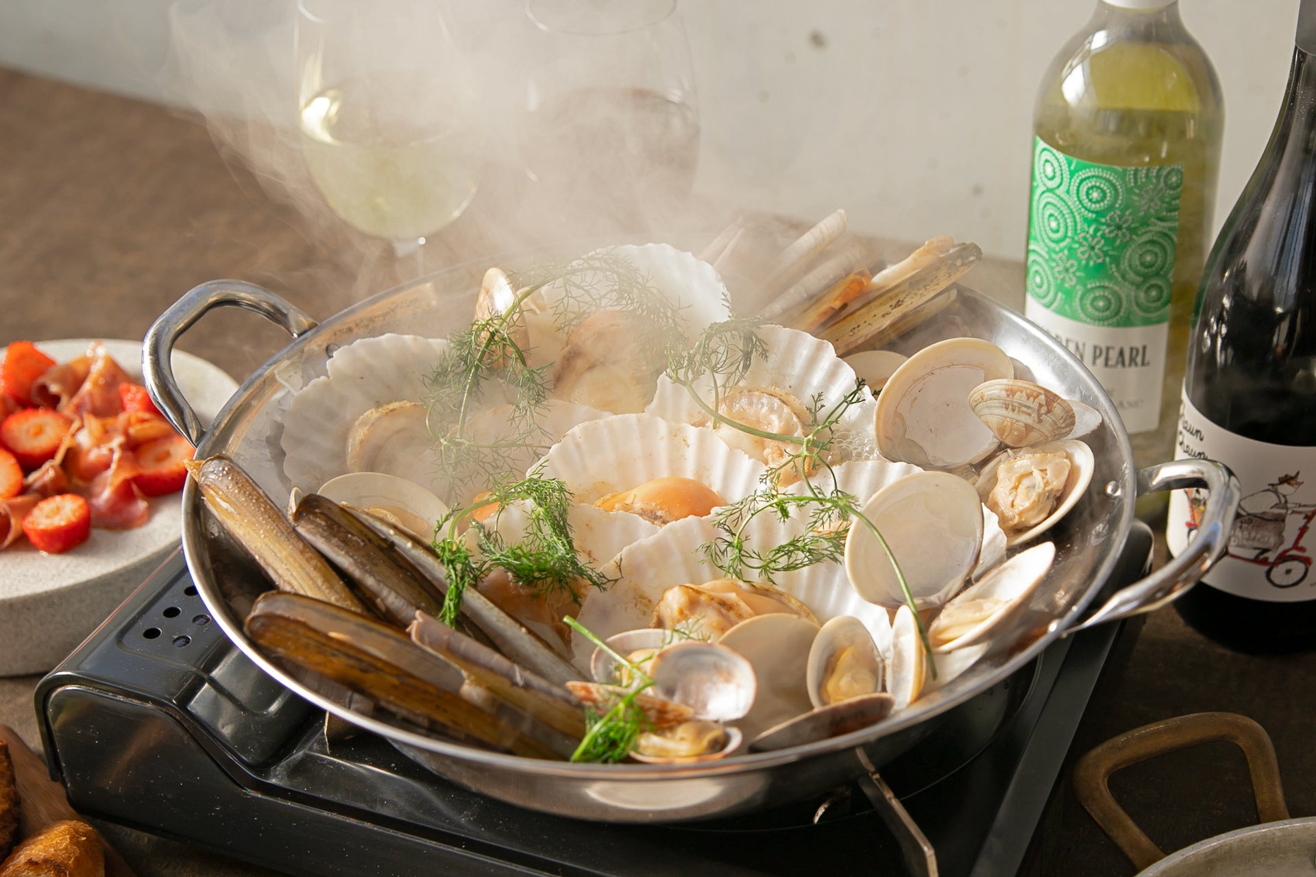 寒い季節は貝鍋×BBQで決まり!冬のあったかプラン新登場!三井アウトレットパーク マリンピア神戸内にある「LAGOON BBQ CLUB」にて。