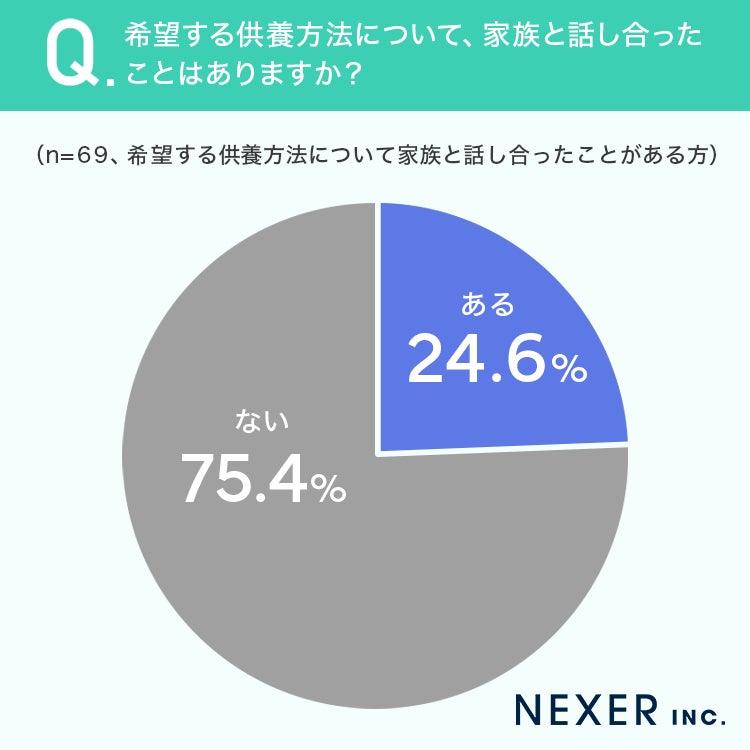 自分の死後の供養方法について具体的に考えている人は半数を超え、家族と話し合っているケースも多い一方で、意見の違いや気持ちの整理がつかず悩む声も見られました。