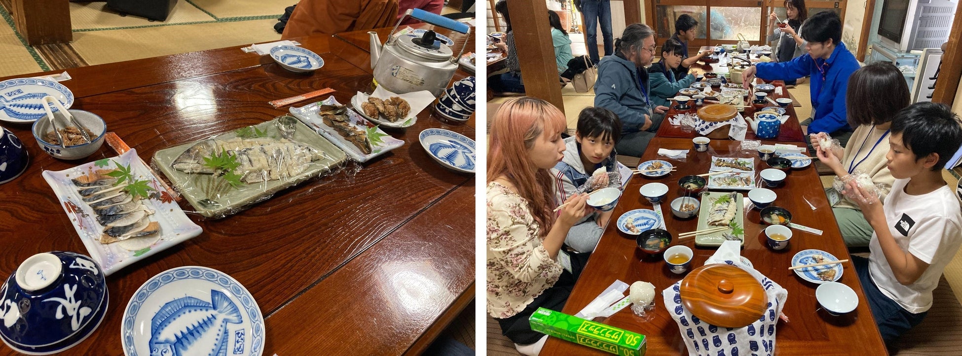 漁港に面した田烏地区で訪れたのは民宿佐助。こちらで学習するのは、鯖の発酵食です。漁ができない冬場のたんぱく源として誕生した歴史や、夏場20℃~30℃ぐらいの気温になると発酵がすすんで風味が増加する事などをご主人の森下さんが説明。へしこに加え、麹とごはんを加えさらに発酵させたなれずしを試食しました。口いっぱいに広がる鯖のうま味!おかわりをする参加者が続出しました。