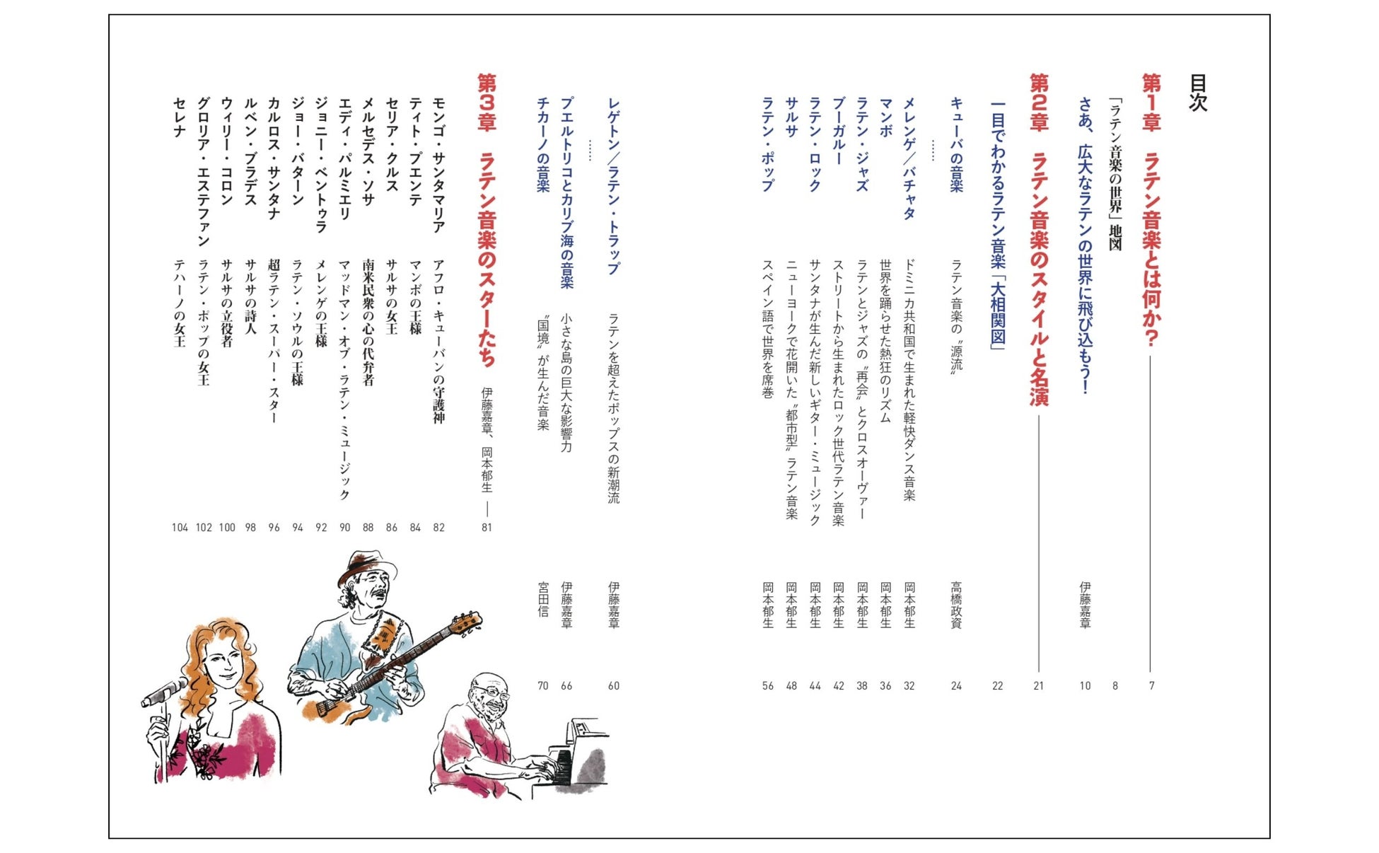 また本書では、「マッドマン・オブ・ラテン・ミュージック」エディ・パルミエリを筆頭に、「アフロ・キューバンの守護神」モンゴ・サンタマリア、「サルサの女王」セリア・クルス、「超ラテン・スーパー・スター」カルロス・サンタナなど、ラテン音楽の歴史を彩る、ユニークな個性と比類なき音楽性をもつレジェンド、12名をご紹介。