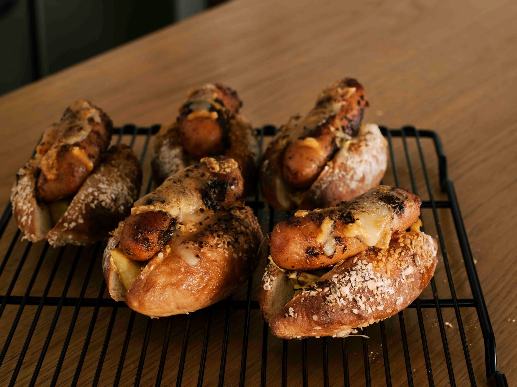 ハーブとガーリックで焼いたソーセージと、酸味の利いたザワークラフトポテトを一緒に挟んだ食べ応えのあるホットドッグ。