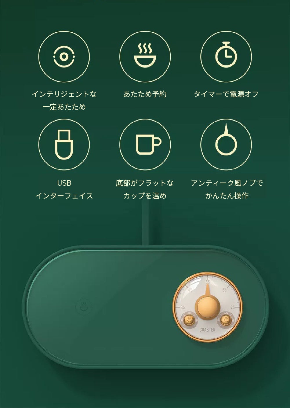 温め時間設定・タイマー電源オフ/USBケーブル接続/300〜500mlドリンクやスープに/レトロ家電・ギフトに・温活