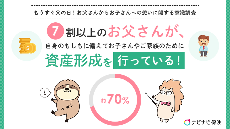 6月19日は父の日!お父さんからお子さんへの想いに関する意識調査 7割以上のお父さんが「自身のもしもに備え子どものために資産形成を行っている」子育てにおいて大変だと感じるのは“お金の確保”と6割が回答