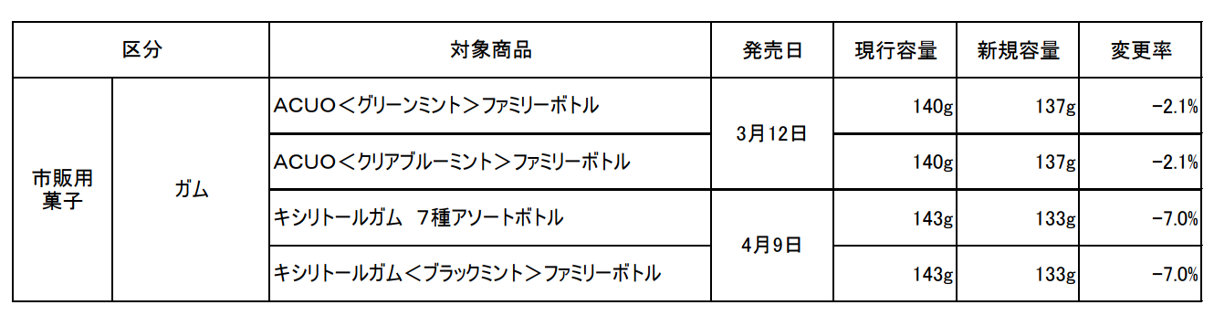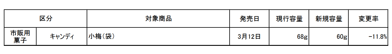 菓子内容量変更商品