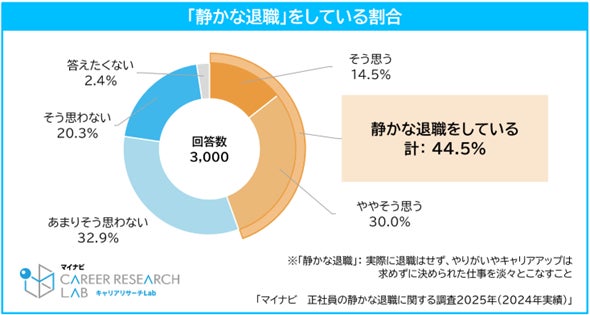 株式会社マイナビ(本社:東京都千代田区、代表取締役 社長執行役員:土屋芳明)は、20~59歳の正社員を対象に実施した「マイナビ 正社員の静かな退職に関する調査2025年(2024年実績)」の結果を発表しました。