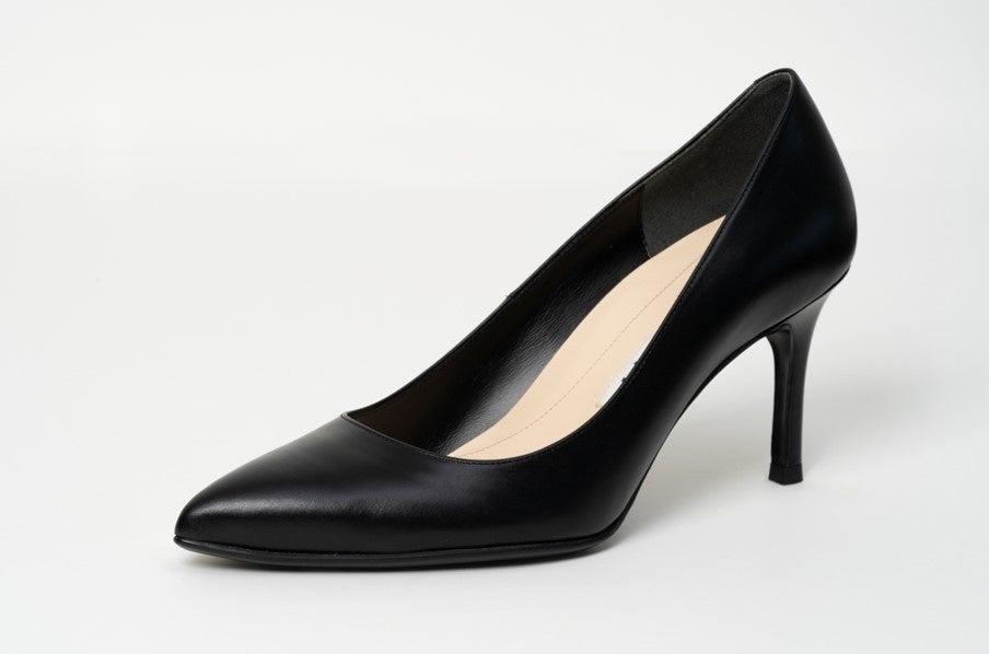 「毎日履きたい、美しく見えるデザイン」を目指して、通常の2倍のデザイン工程をかけて数mm単位の修正を繰り返し、絶妙なカットラインと美しいヒールシェイプを実現しました。豊かな感性と高い技術を持った靴職人たちの想いから生まれたパンプスです。