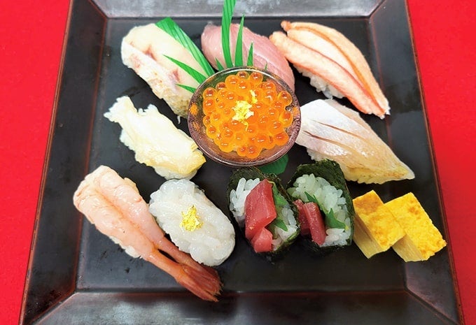 豊かな海から届いた8種類のネタのお寿司と、いくら、出汁巻きを。