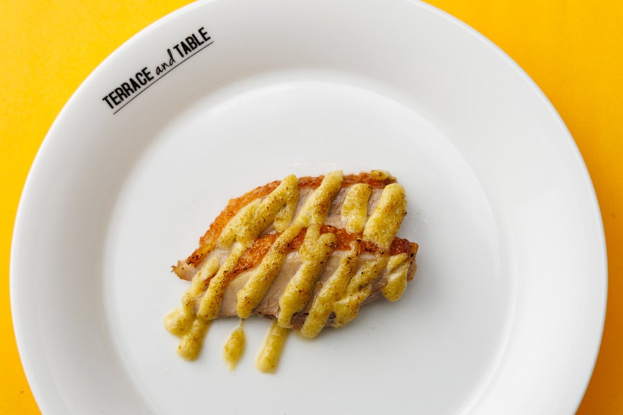 宮崎を代表する地鶏「みやざき地頭鶏」を使用し、小林市のすき特産のピリッとした辛味が際立つ柚子胡椒をマヨネーズで和えてマイルドなソースに仕上げます。