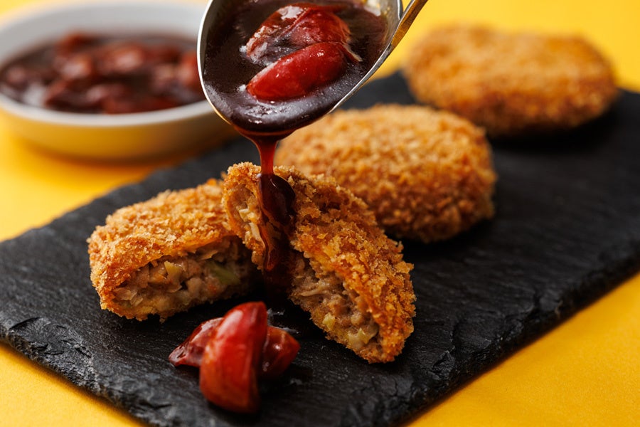 観音池ポークのメンチカツ フレッシュトマトとブラウンソース