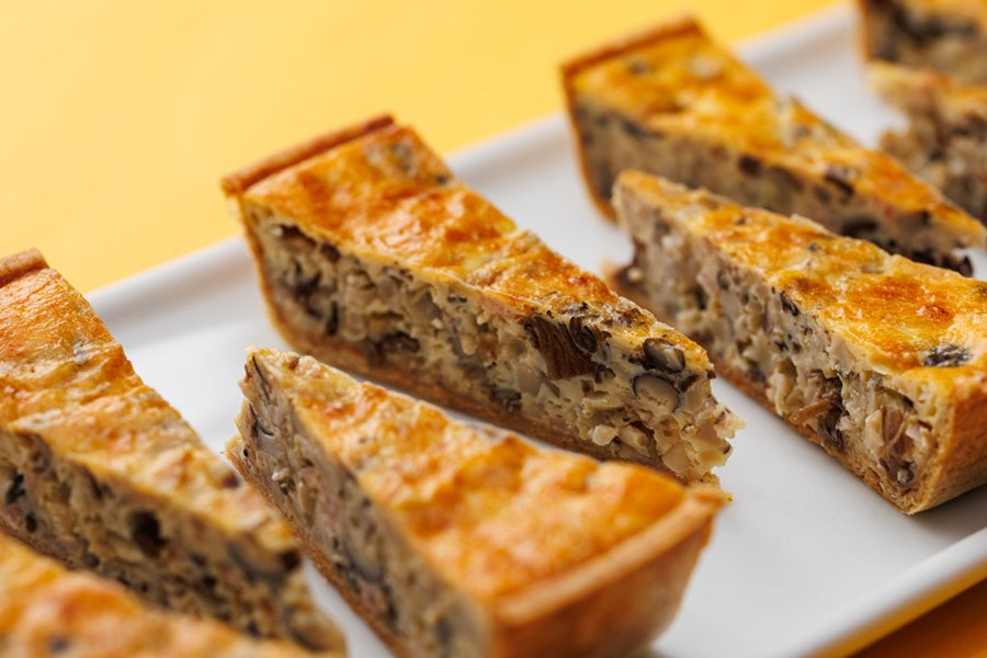 小林市の玉光園で丁寧に育てられたキノコ4種を使用した、風味豊かなキッシュです。霧島連山から流れる清らかな名水を含むキノコは歯ごたえがあり、みずみずしい味わいです。
