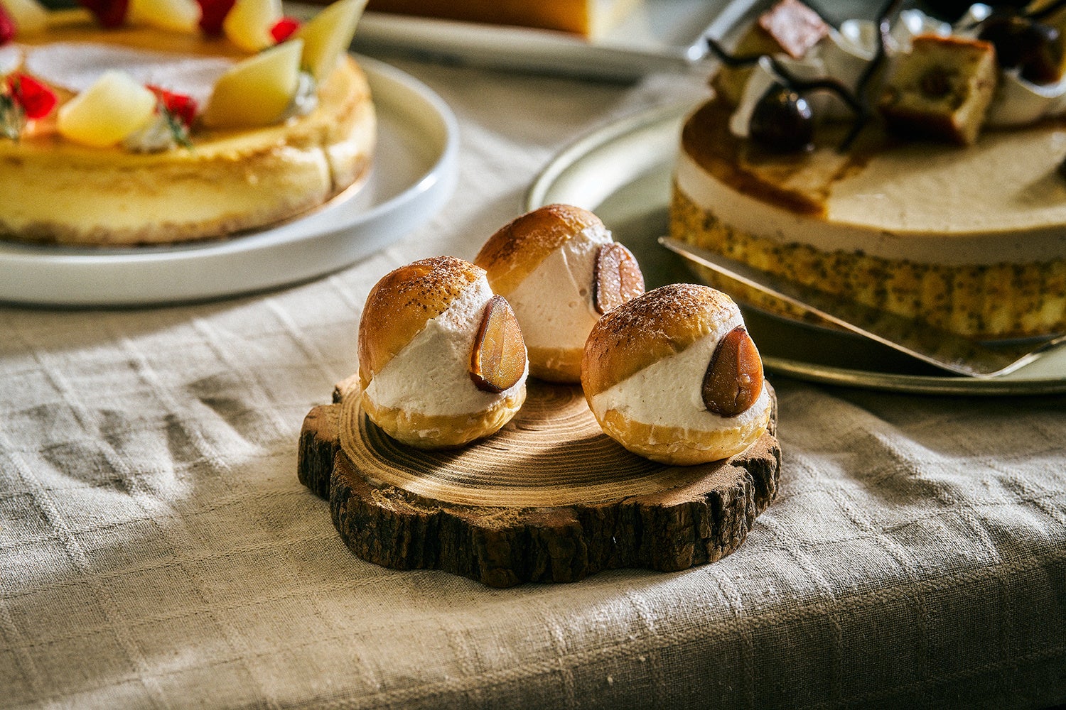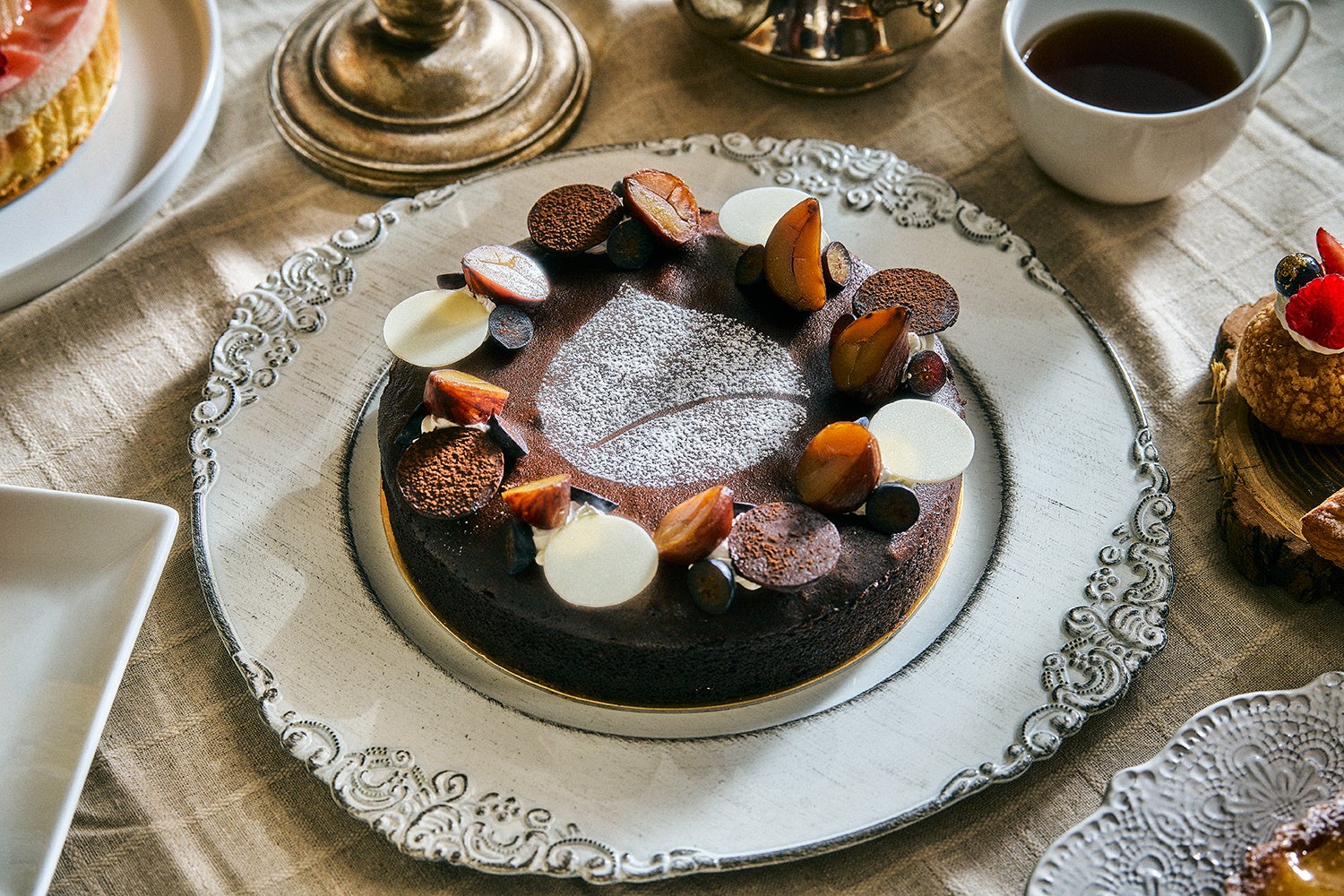 さらに、しっとりと焼き上げたガトーショコラに大粒の栗をあしらった『栗のガトーショコラ』、栗の豊かな風味を生クリームが引き立てる『栗のマリトッツォ』など、秋の味覚を味わえる15種類以上のスイーツがお楽しみいただけます。この他、『生搾りモンブラン』と『ラ・フランスソースのジュビレ』は、パティシエがお客様の目の前で仕上げます。