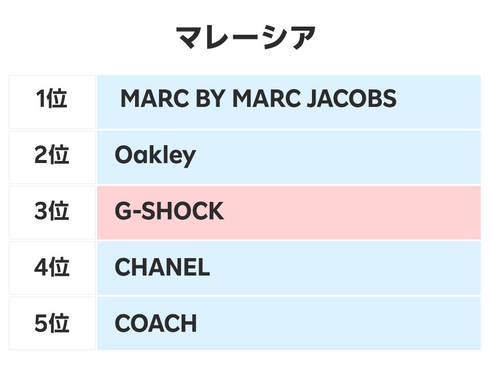 ■マレーシアでは「MARC BY MARC JACOBS」や「Oakley」など他の地域ではランクインしなかったブランドがランクイン
