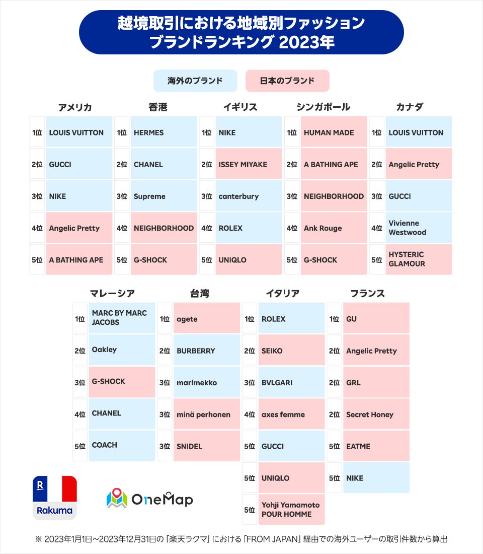 「楽天ラクマ」と「FROM JAPAN」、越境取引における国・地域別ファッションブランドの人気ランキングを発表