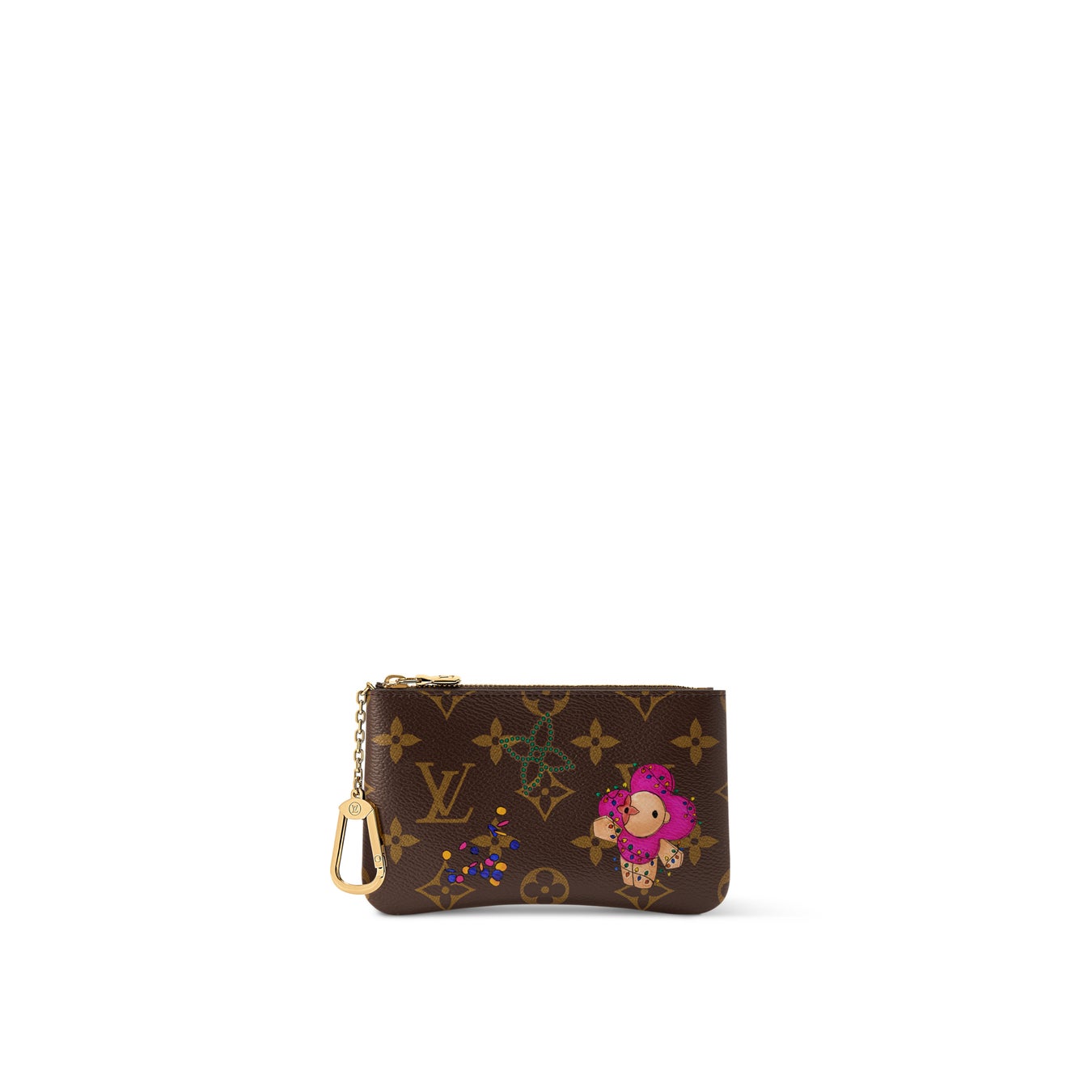 小ぶりなサイズで登場した「カードキーケース ポシェット·クレ」。シグネチャーのモノグラム·キャンバスを使用した、メゾンのアイコニックな伝統を讃えるアイテムです。鮮やかなフローズンオーキッドカラーのディテールが特徴の、ルイ·ヴィトンのマスコットが遊び心溢れるイラストに。鍵などを取付けられるゴールドカラーのフックや、紙幣やコインを安全に収納できるファスナー付きポケットも魅力です。
