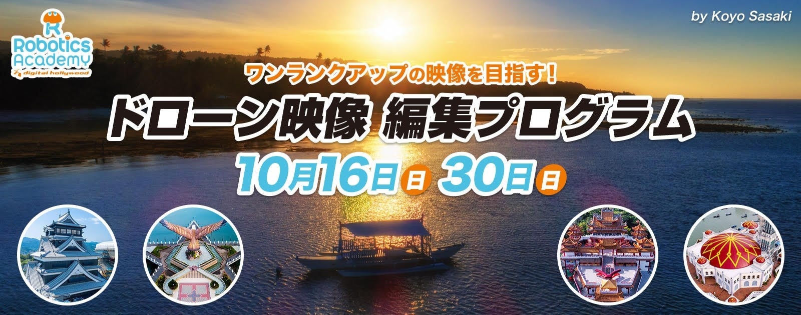 IT関連及びデジタルコンテンツの人材養成スクール・大学・大学院を運営するデジタルハリウッド株式会社(本社:東京都千代田区、代表取締役社長兼CEO吉村毅、学長 杉山知之)が運営する『Digital Hollywood Robotics Academy』(デジタルハリウッド ロボティクスアカデミー)では、ドローンの映像編集に特化した講座「ドローン映像編集プログラム」(全2回)を10月に開講します。