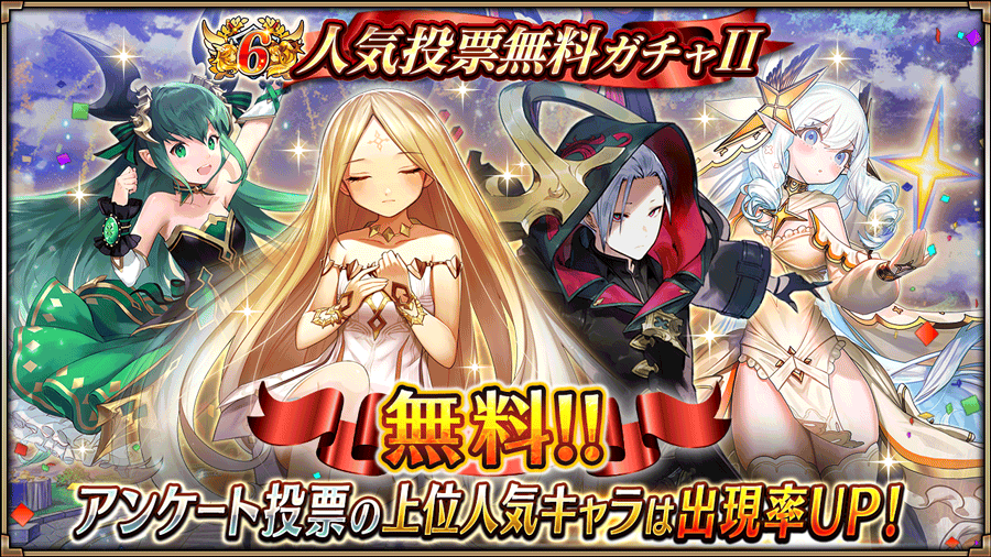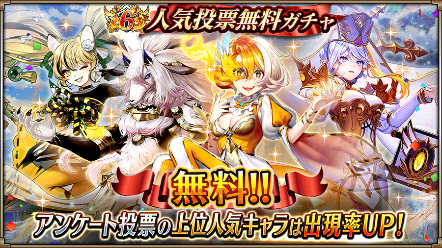 6周年を記念して「人気投票無料ガチャ」を開催!6月9日(木)より、1日1回10連ガチャが無料!
