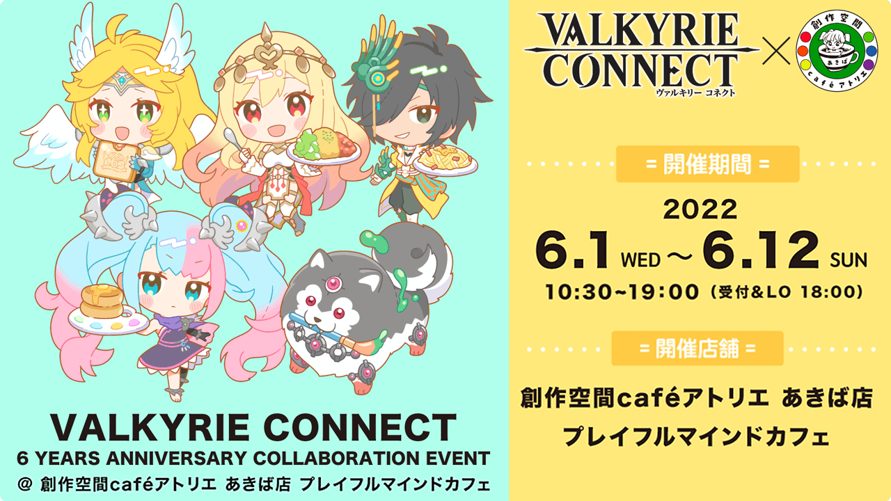 至高のハイファンタジーRPG『ヴァルキリーコネクト』が 6周年キャンペーンを開催!6,666ダイヤプレゼント!「創作空間caféアトリエ あきば店」に期間限定コラボカフェメニューが登場!
