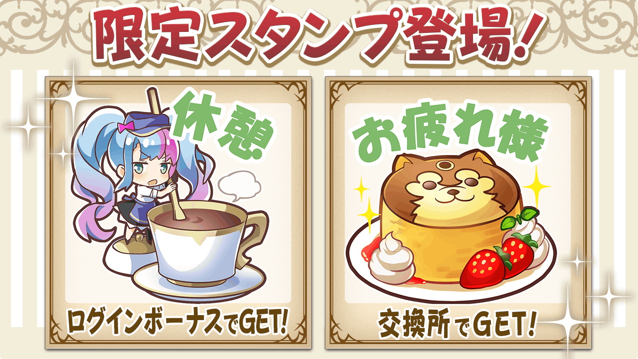 コラボカフェ開催を記念して、ゲーム内チャットで使用できる2種類の限定スタンプをプレゼント!