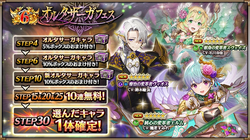 「新約」シリーズの全キャラが初めて集結する「6周年記念オルタサーガフェス」を開催!最新キャラを手に入れよう!