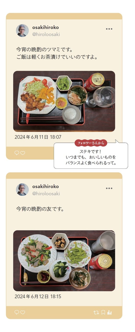 78歳から始めたX(旧・Twitter)の投稿が話題と共感を集めたシニアインフルエンサー、大崎博子さんの著書『幸せな最期を迎えた91歳ひとり暮らしの食卓』を2024年11月22日に発売します。
