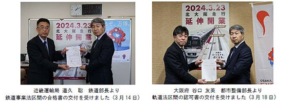この結果、鉄道事業法区間の鉄道施設について国土交通省近畿運輸局より合格書が交付され、また、軌道法区間の運輸開始について同省の承認を経て、大阪府知事より認可を取得しましたのでお知らせします。これにより、お客様が安心して快適にご利用いただくための開業準備が整いました。