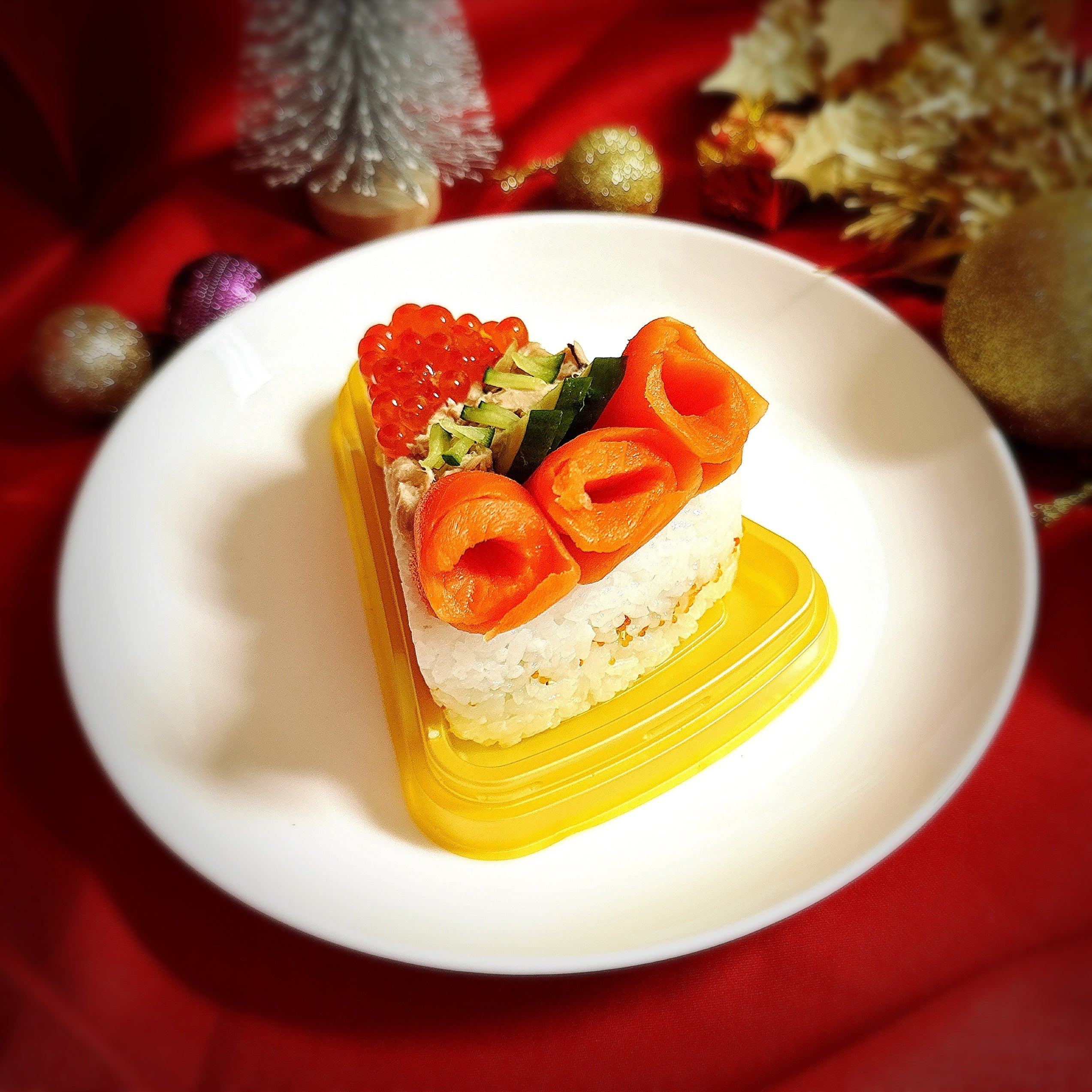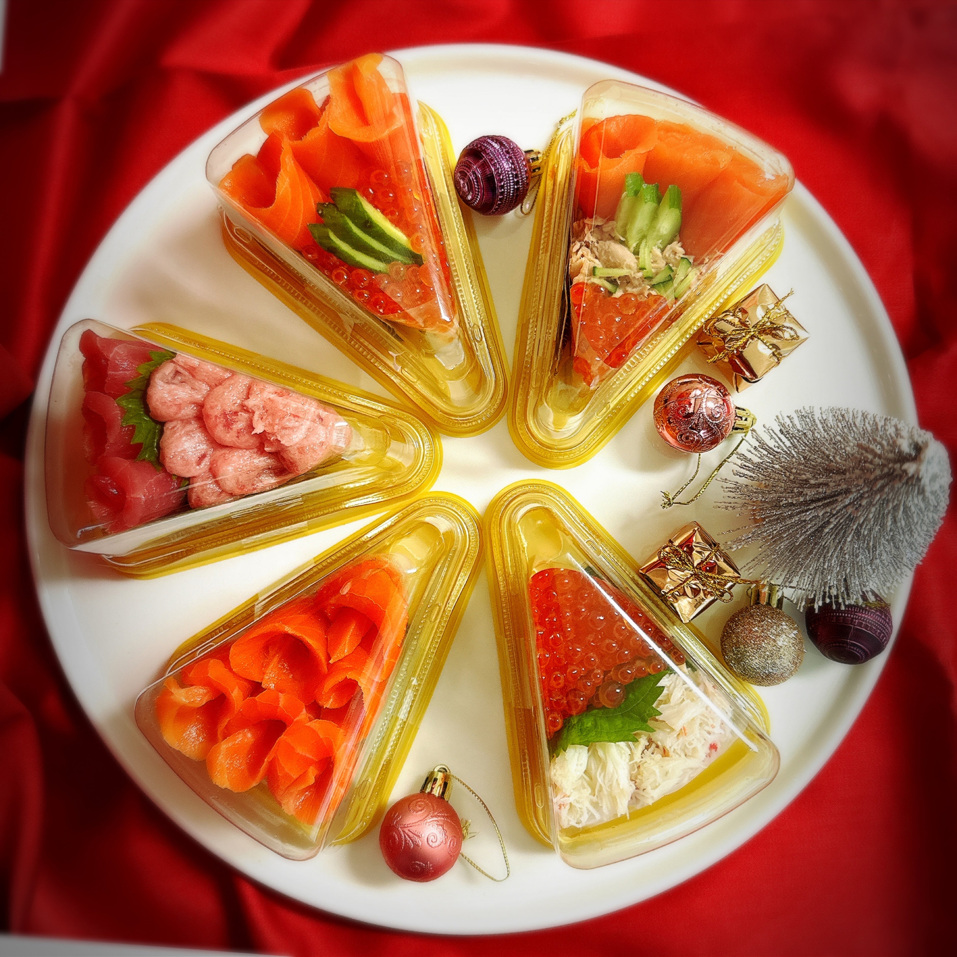 まるでショートケーキ!?マグロやサーモン、かに、いくらなど人気の海鮮を盛り付けた、華やかなちらし寿司のケーキ。