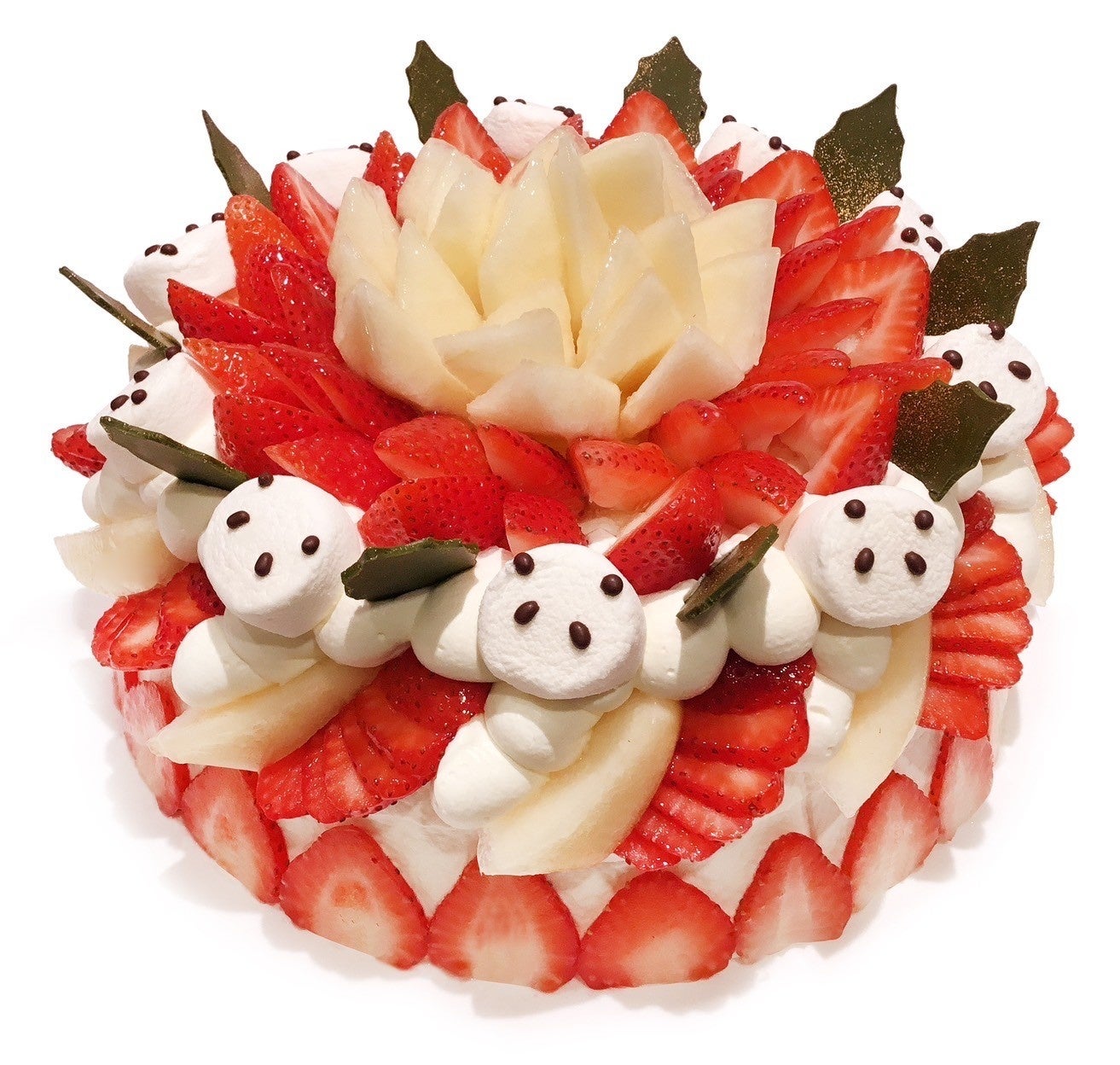 いちごと洋梨を使用し、かわいらしいパンダをマシュマロで表現。柊の形をした抹茶チョコレートを合わせたクリスマス期間限定のショートケーキです。店内でお食事の場合は、クリスマスプレートでご用意♪テイクアウトも可。