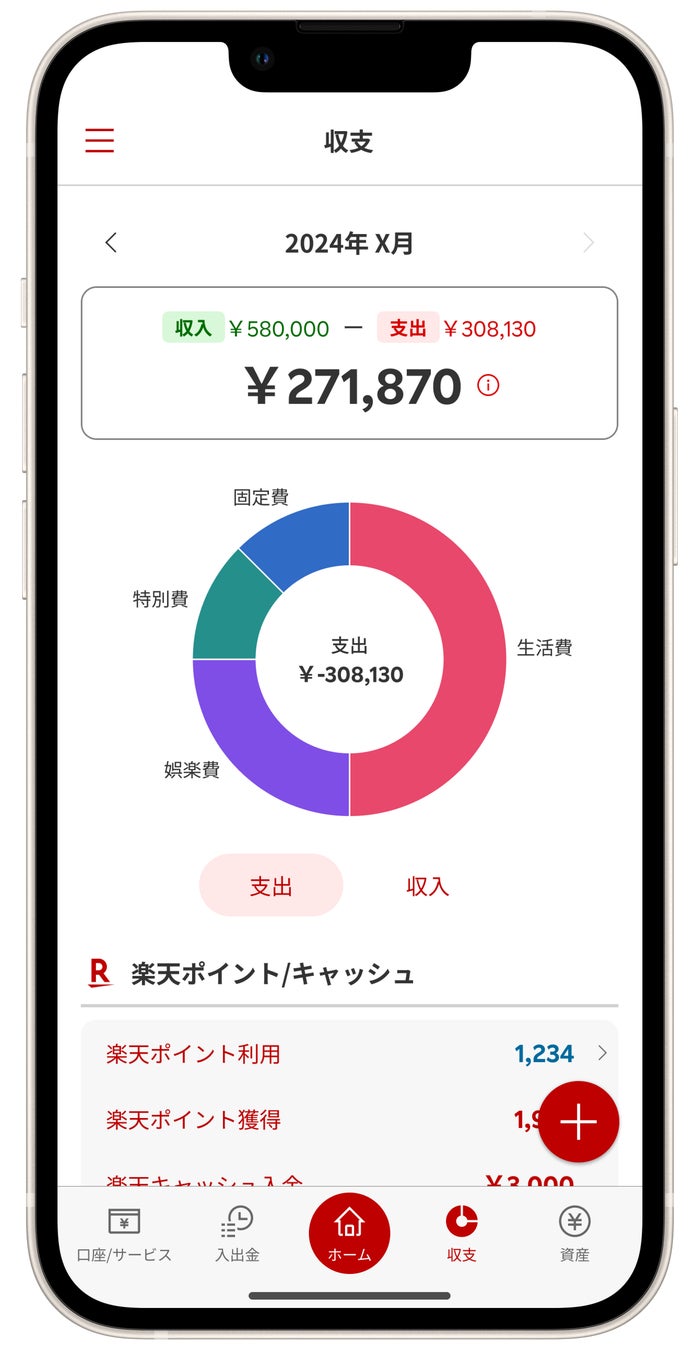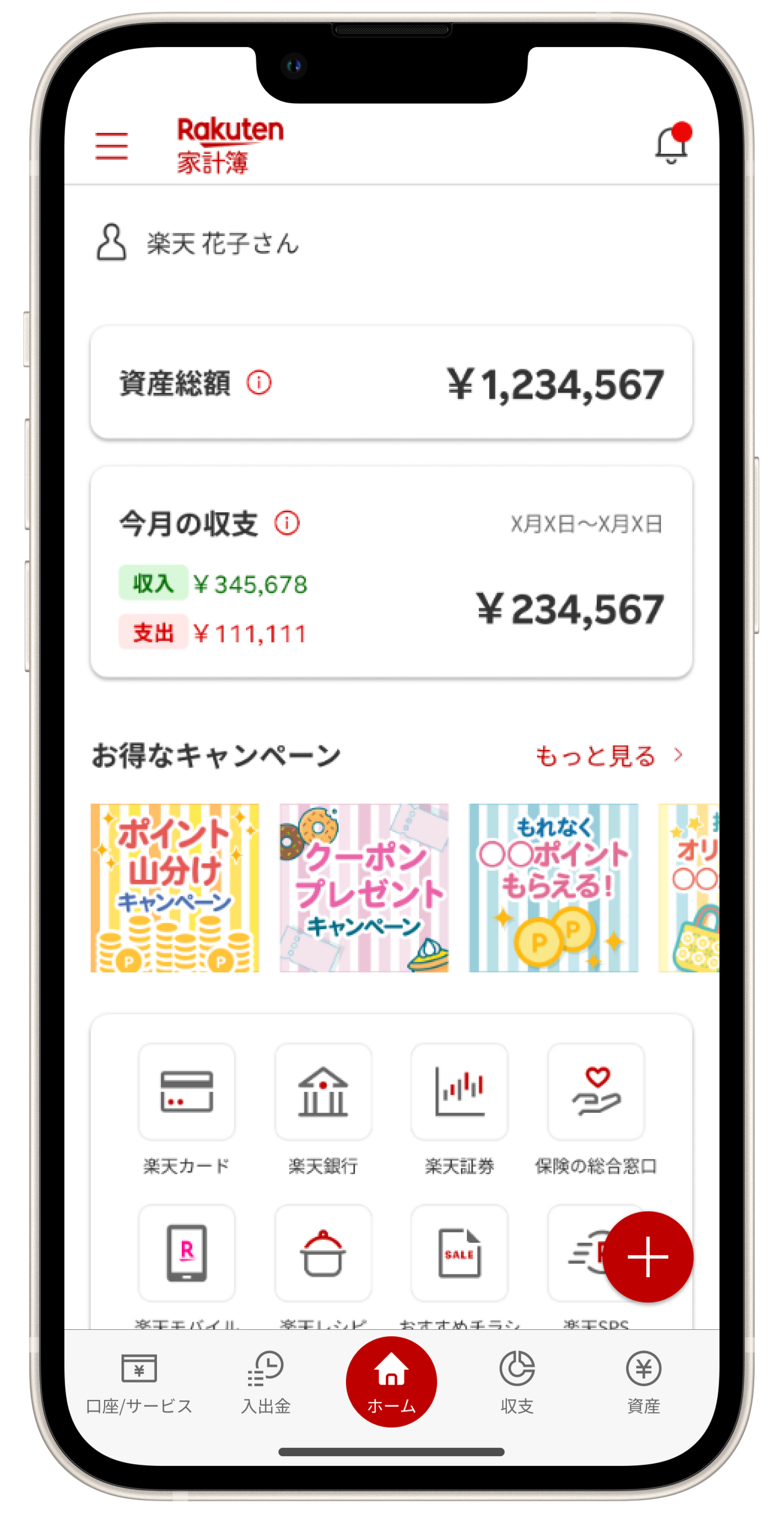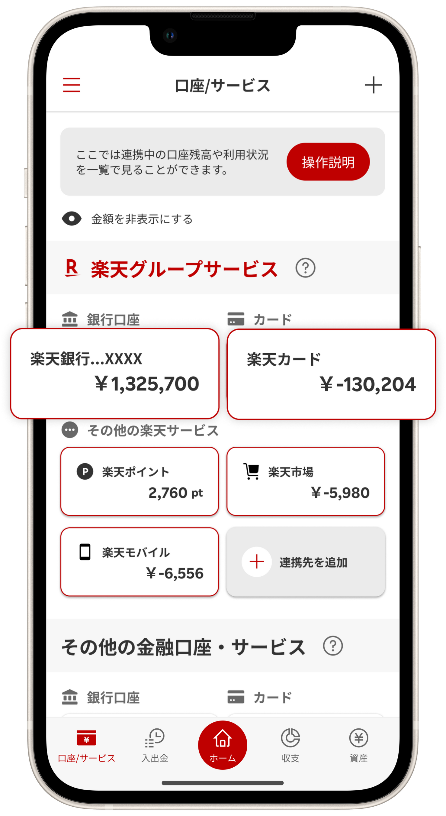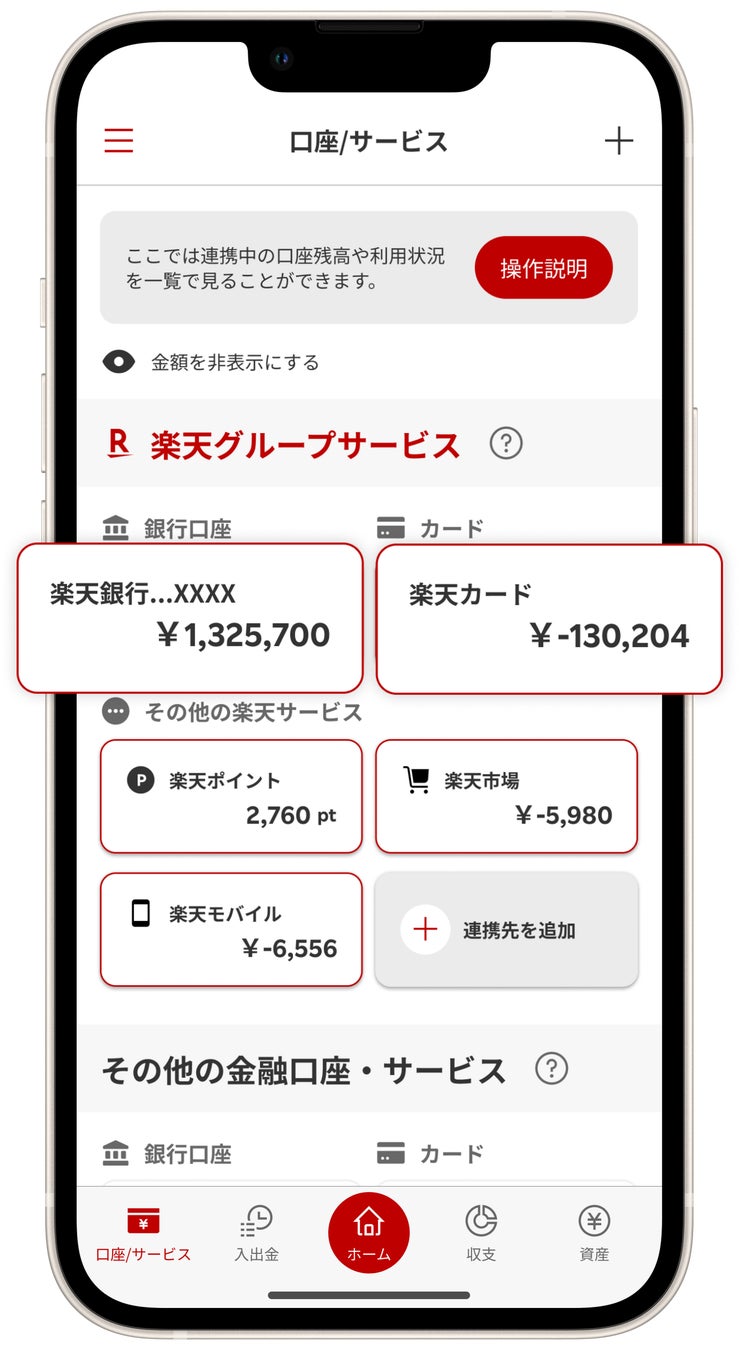 - 楽天グループ内外の様々なサービスや口座と連携し、アプリ内で家計の一元管理が可能に -