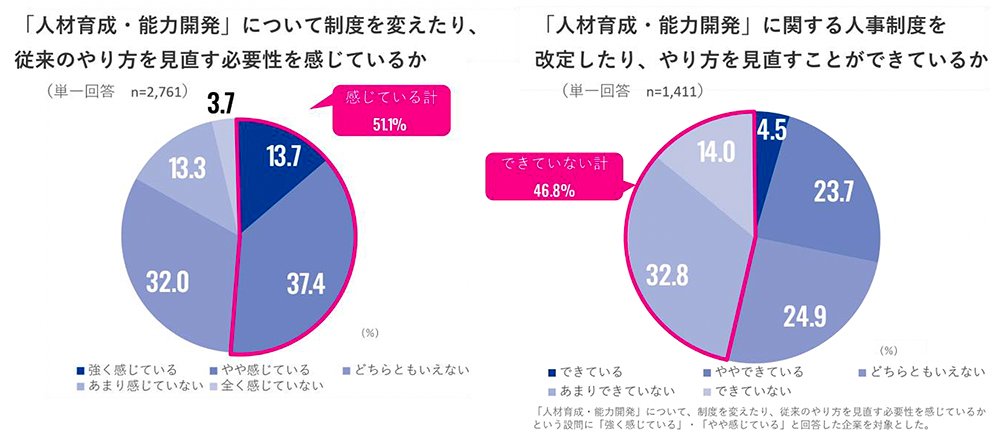 人材育成・能力開発について従来のやり方を見直す必要性を感じている企業が半数以上~加速する必要なスキルの高度化・多様化、求められる育成・能力開発体制の見直し~