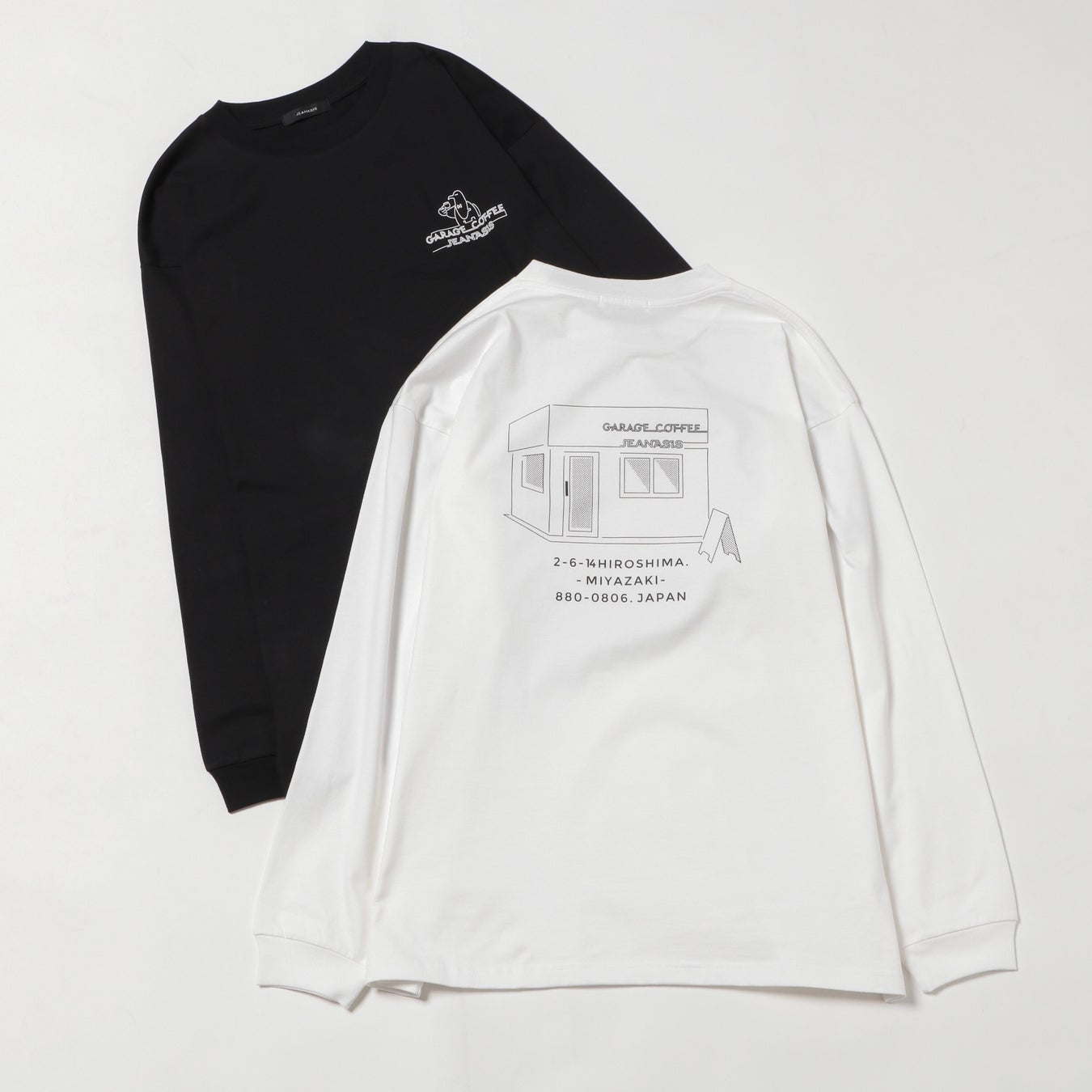 JEANASISイオンモール宮崎店ではGARAGE COFFEEが大切にしている”人と人のつながり”を、ジーナシスらしくデザインに落とし込んだロンT・Tシャツ・エコバッグ・グラスの4種類のコラボアイテムを、数量限定で発売いたします。