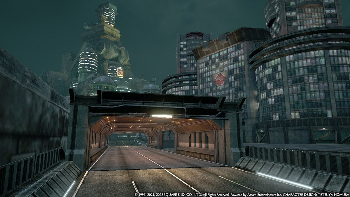 都市の中心には「神羅ビル」がそびえ立ち、「壱番魔晄炉」「八番街」「高速道路」など、『ファイナルファンタジーVII リメイク』でおなじみのさまざまなロケーションが再現されています。