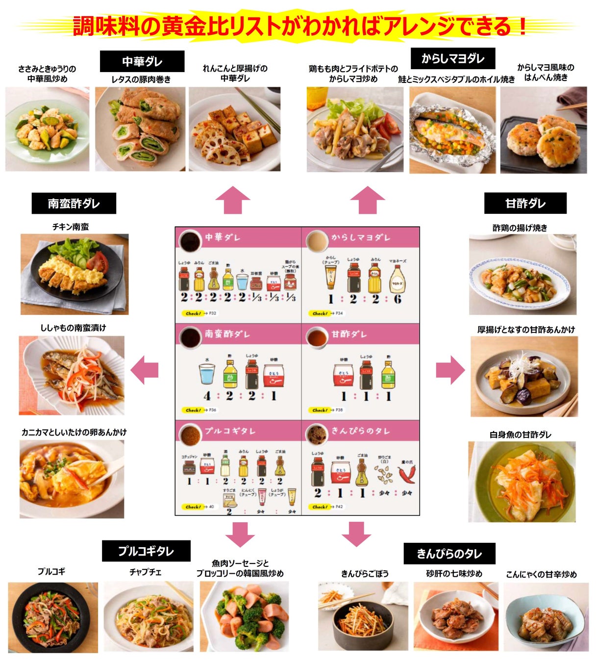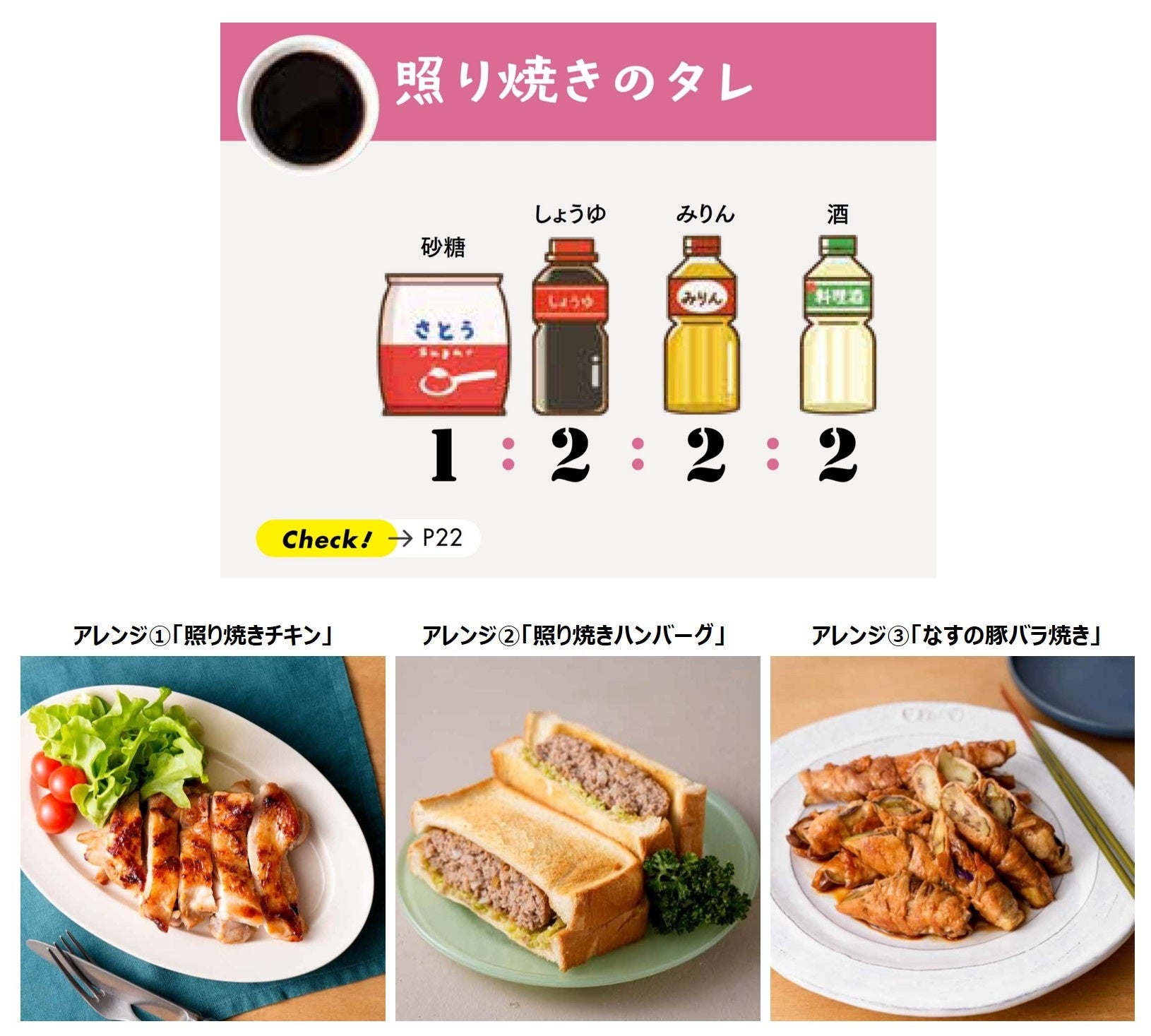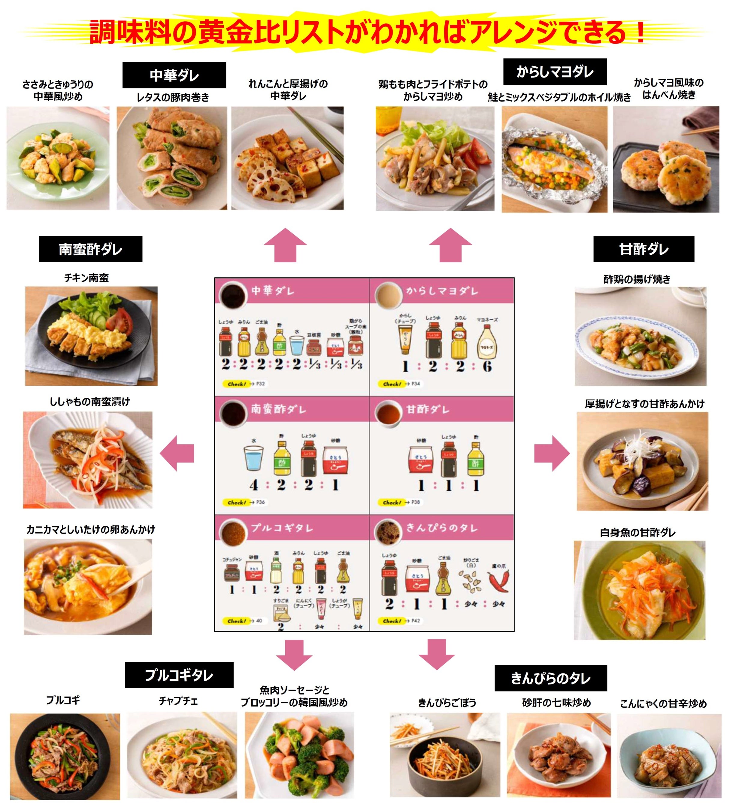 本誌では、簡単でおいしい調味料の黄金比と、その調味料を使ったレシピをたくさんご紹介しています。調味料の比率さえ知っていれば、誰でもすぐに料理上手になれるレシピになっています。また、紹介しているタレの多くは、1つのタレで3種類の料理を作れるようになっているので、料理のレパートリーも広がるはず。ぜひ活用して、“もっと手軽にもっとおいしく” 調理の負担を減らしながらも、家族や大切な人との食事時間を楽しんでもらえたらうれしいです。