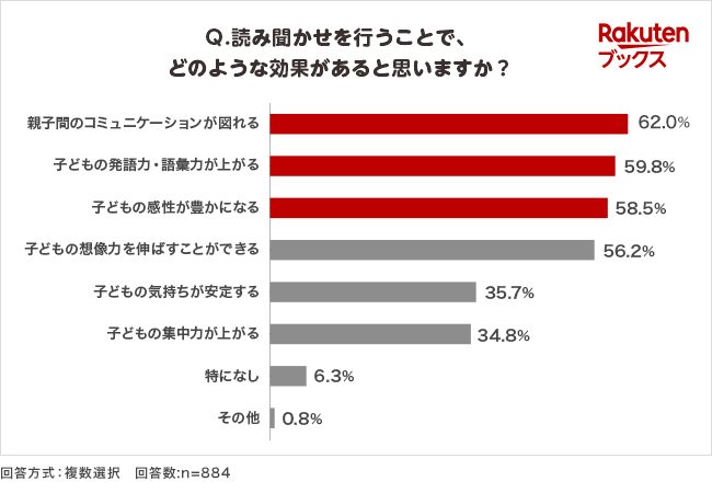 Q.読み聞かせを行うことで、どのような効果があると思いますか?