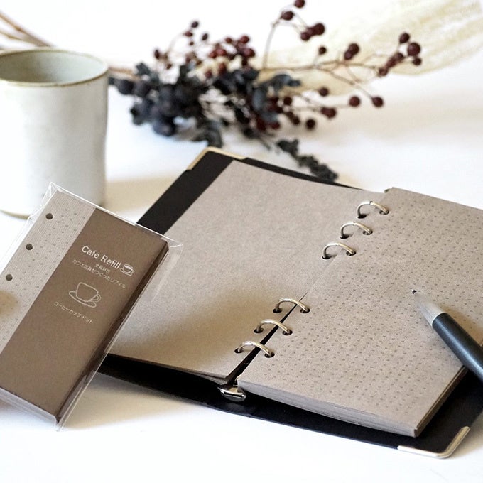 カフェモチーフにちなんだデザインリフィル。よく見るとドットがコーヒーカップの形になっています。