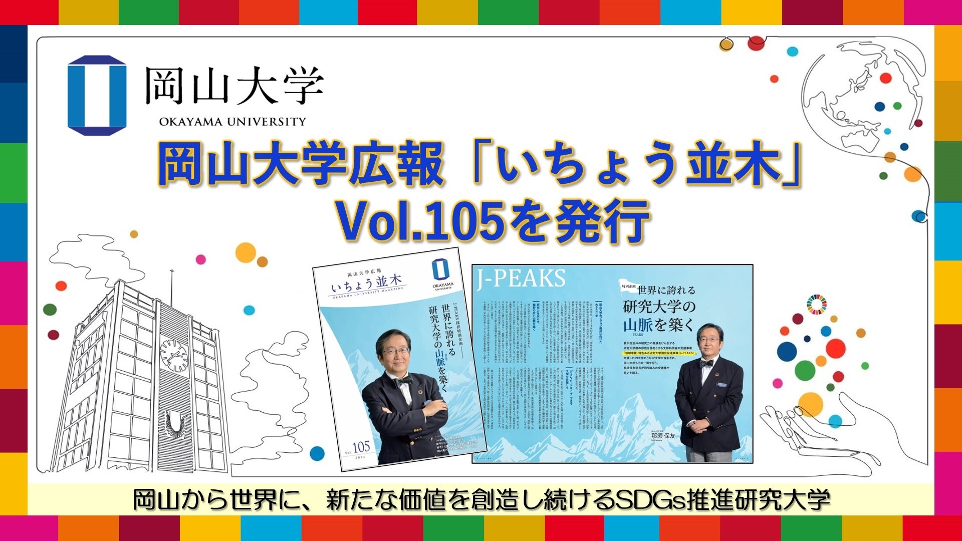 国立大学法人岡山大学(本部:岡山市北区、学長:那須保友)は、 本学の活動などを紹介する広報誌「いちょう並木」のVol.105を発行(発行:2024年4月1日)しました。