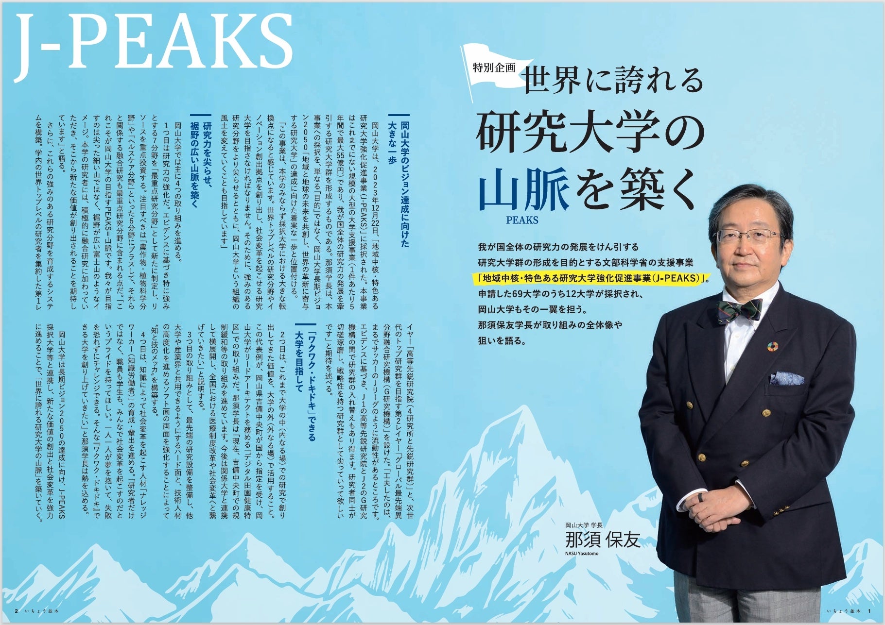 【岡山大学】岡山大学広報「いちょう並木」Vol.105発行 ~地域中核・特色ある研究大学強化促進事業(J-PEAKS)採択特別企画 世界に誇れる研究大学の山脈を築く~