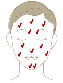 ●朝晩の洗顔のあと、指先にアーモンド粒1個分(1.5g)をとり、顔全体になじませます。