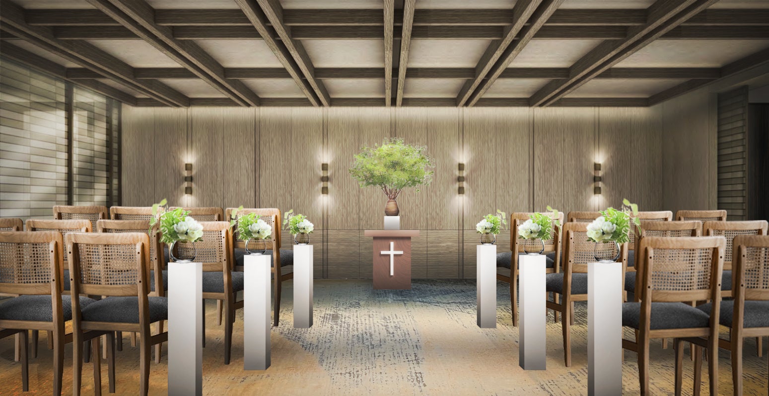 挙式の舞台となるチャペルは、木の温もりが息づく、洗練された空間を背景に創られる誓いの場所。 凛とした静寂と温もりにあふれ、おふたりの想いが心に響きわたります。挙式のスタイルは、おふたりの価値観やストーリーに寄り添って丁寧にパーソナライズ。こぼれるような笑顔、そして感動の涙に包まれながら、永遠のはじまりをやさしく刻みます。