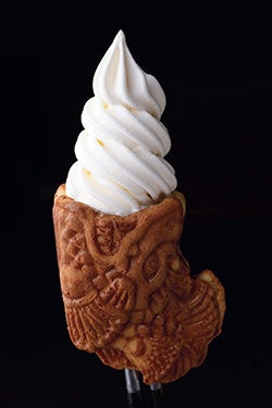 名古屋名物「しゃちほこ」をかたどったスイーツはSNS映えもばっちり!冷たいソフトクリームとあんこの相性もぴったりでクセになるおいしさ。