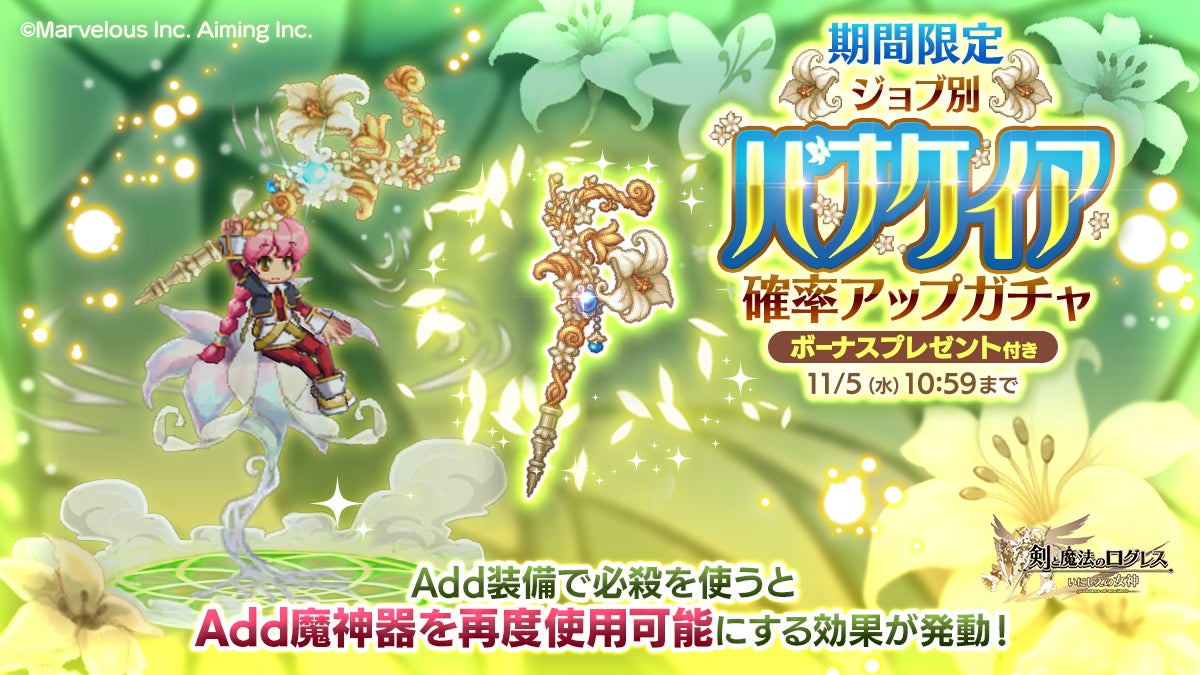 株式会社マーベラス(代表取締役社長:照井 慎一/所在地:東京都品川区)は、スマートフォン向け本格オンラインRPG『剣と魔法のログレス いにしえの女神』において、2025/10/29(水)に「ジョブ別 パナケイア確率アップガチャ」の販売、および「ワールドオーダー 土神獣サンドリアΩ降臨」の開催を含むアップデートを行ったことをお知らせいたします。