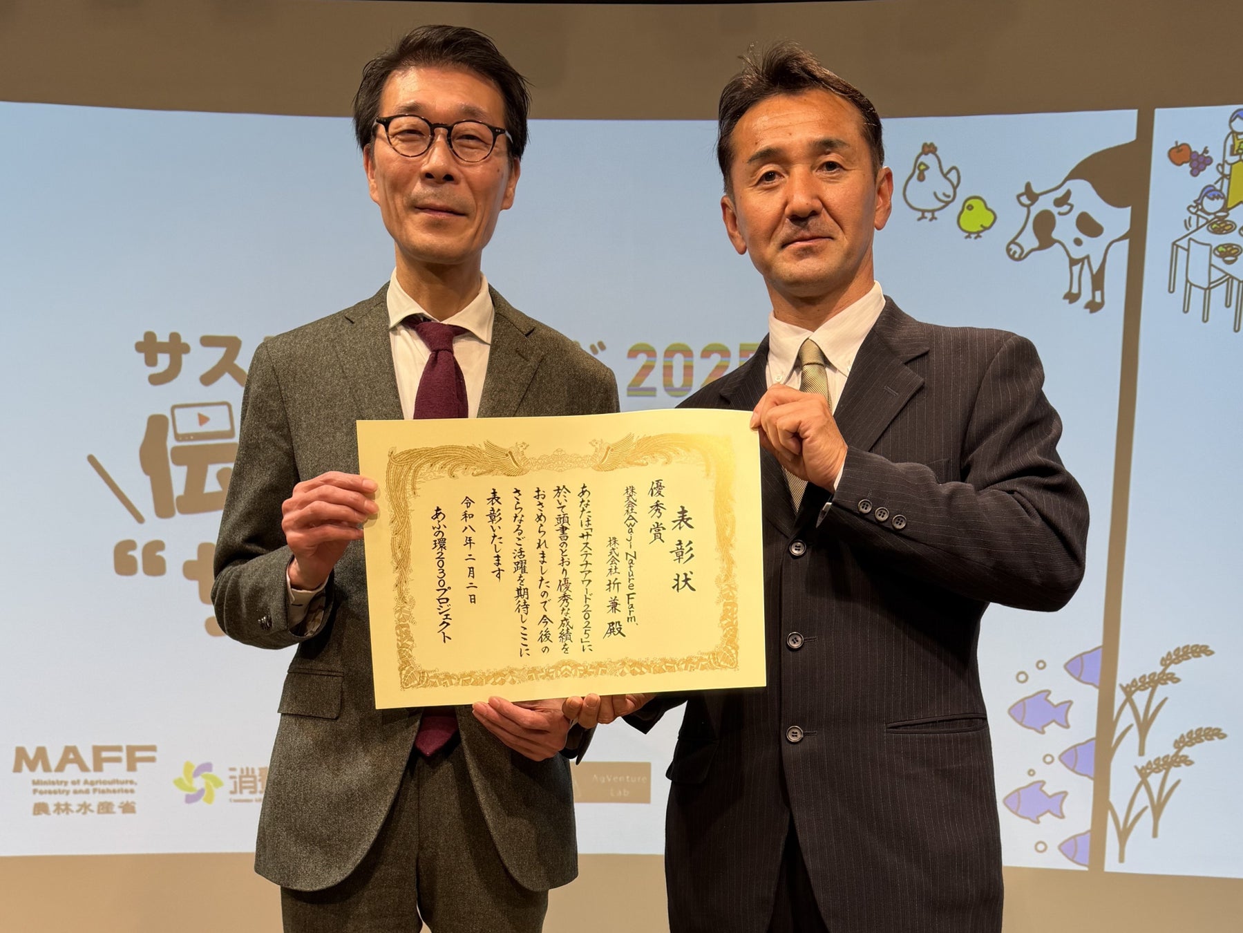 本アワードは、農林水産省が推進する「あふの環2030プロジェクト」の一環として実施され、食・農林水産分野におけるサステナブルな取り組みを表彰するものです。