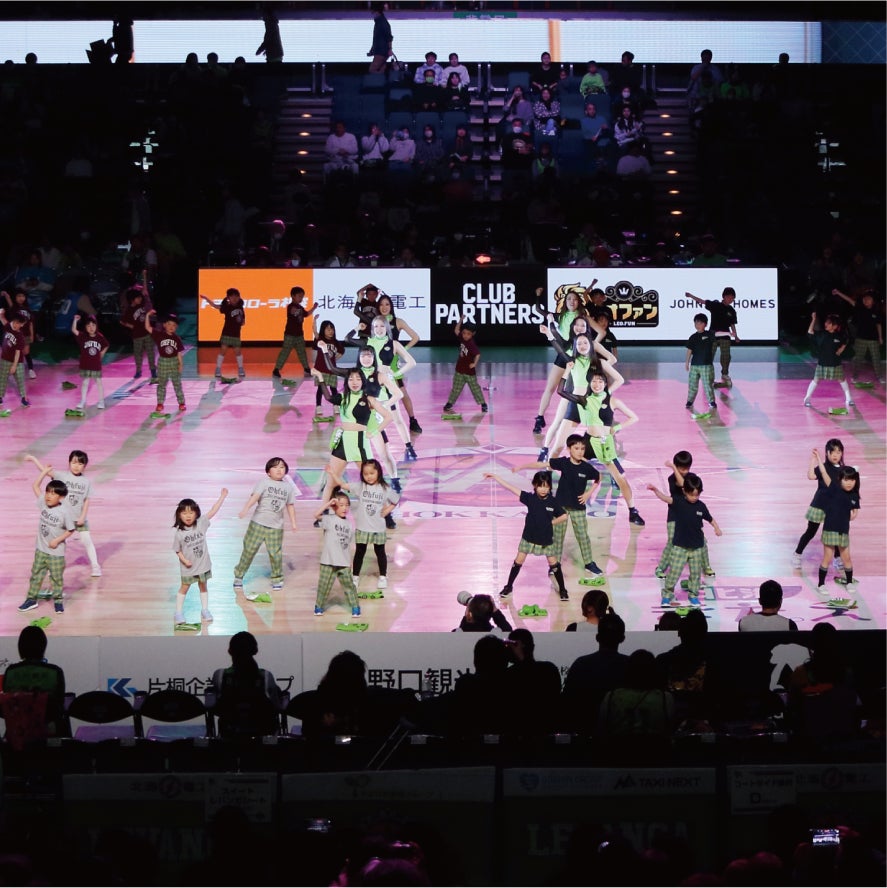 2024年3月3日(日)には、アダストリアがサプライヤーをつとめる日本の男子プロバスケットボールリーグB.LEAGUEの公式戦「レバンガ北海道VS佐賀バルーナーズ」のハーフタイムにおいて、同園の園児約70名がダンスを披露し、併せて新制服のお披露目を行いました。レバンガ北海道の公式練習場【カミニシヴィレッジ】に付帯する「認定こども園さっぽろ幼稚園・保育園」の年長児が一足早く、新しい制服を身にまとい、これまでの学園での学びを披露いたしました。卒園を前に華やかなステージに立ち、素晴らしい思い出をつくることが出来ました。