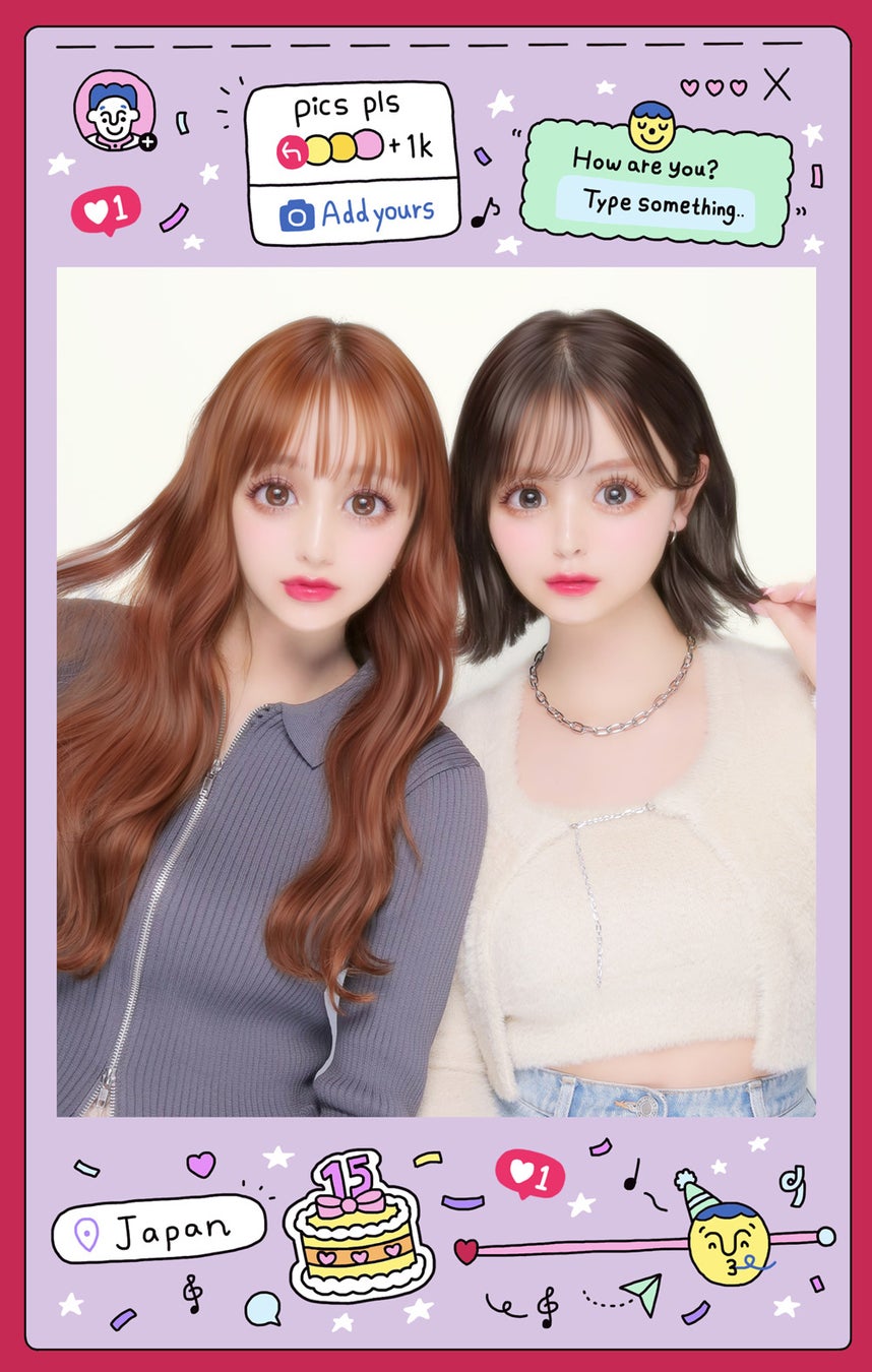 Instagram15周年おめでとうございます。Instagramは私にとって無くてはならないツールであり、イラストレーションを通じてみんなとコミュニケーションを取れる大切な場所です。今回素敵な節目にこのような企画に参加できたことを大変光栄に思っています。老若男女問わず、沢山の方にプリントシール機での思い出を残していただけたら嬉しいです!